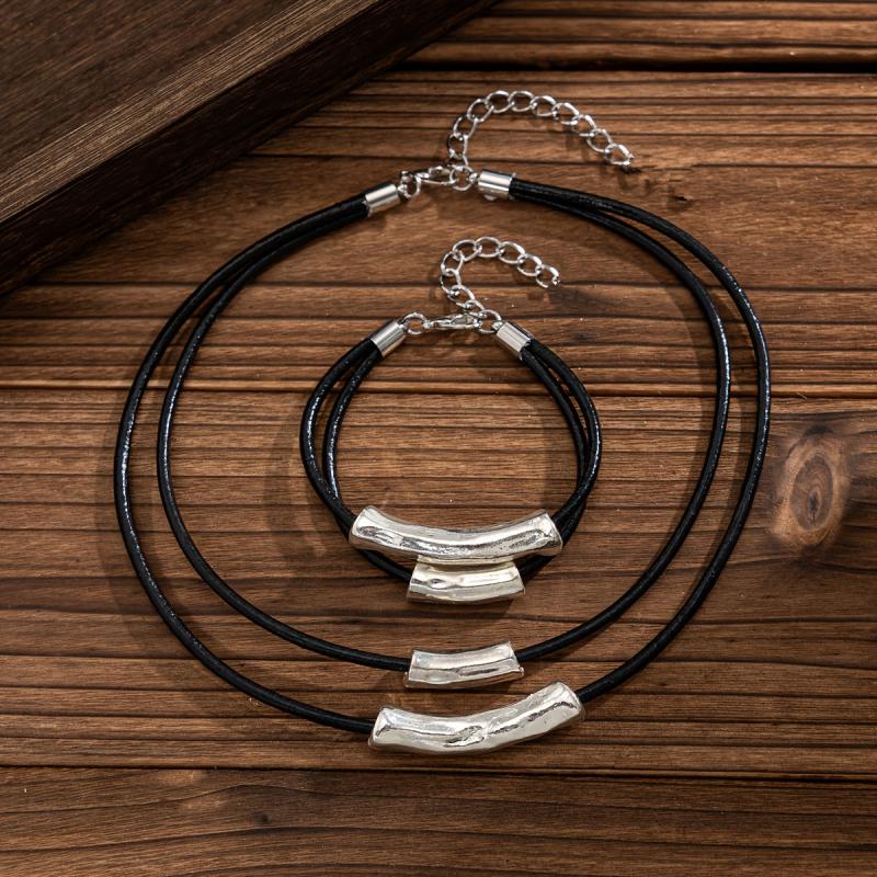 Embrace retro punk style with this wax cord set featuring irregular beads and geometric designs. Perfect for adding edge to your look.