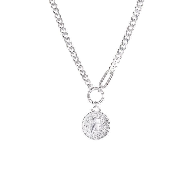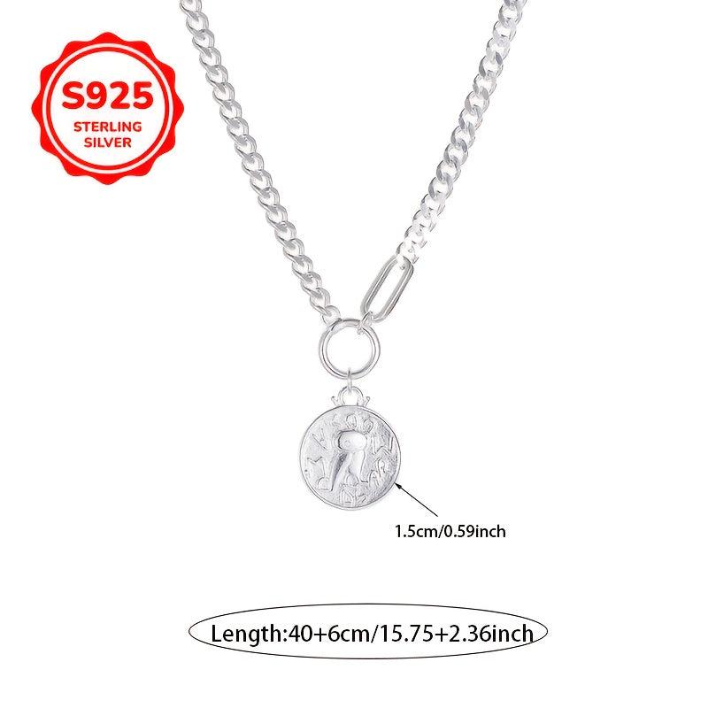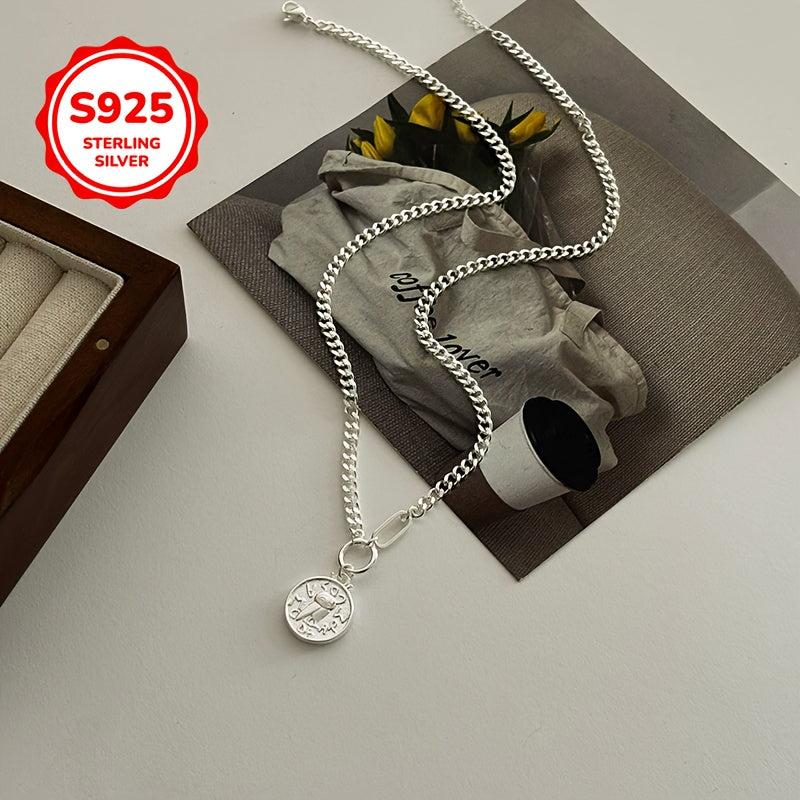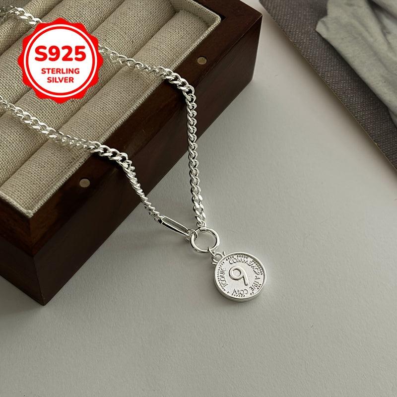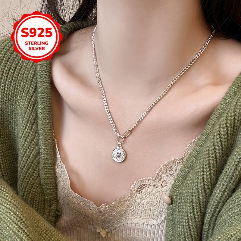 This double-sided pendant necklace features a versatile hip hop coin collarbone chain design, suitable as a couple or BFF gift. S925 low allergy material ensures high quality.