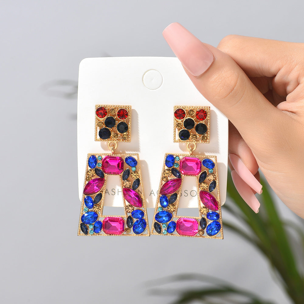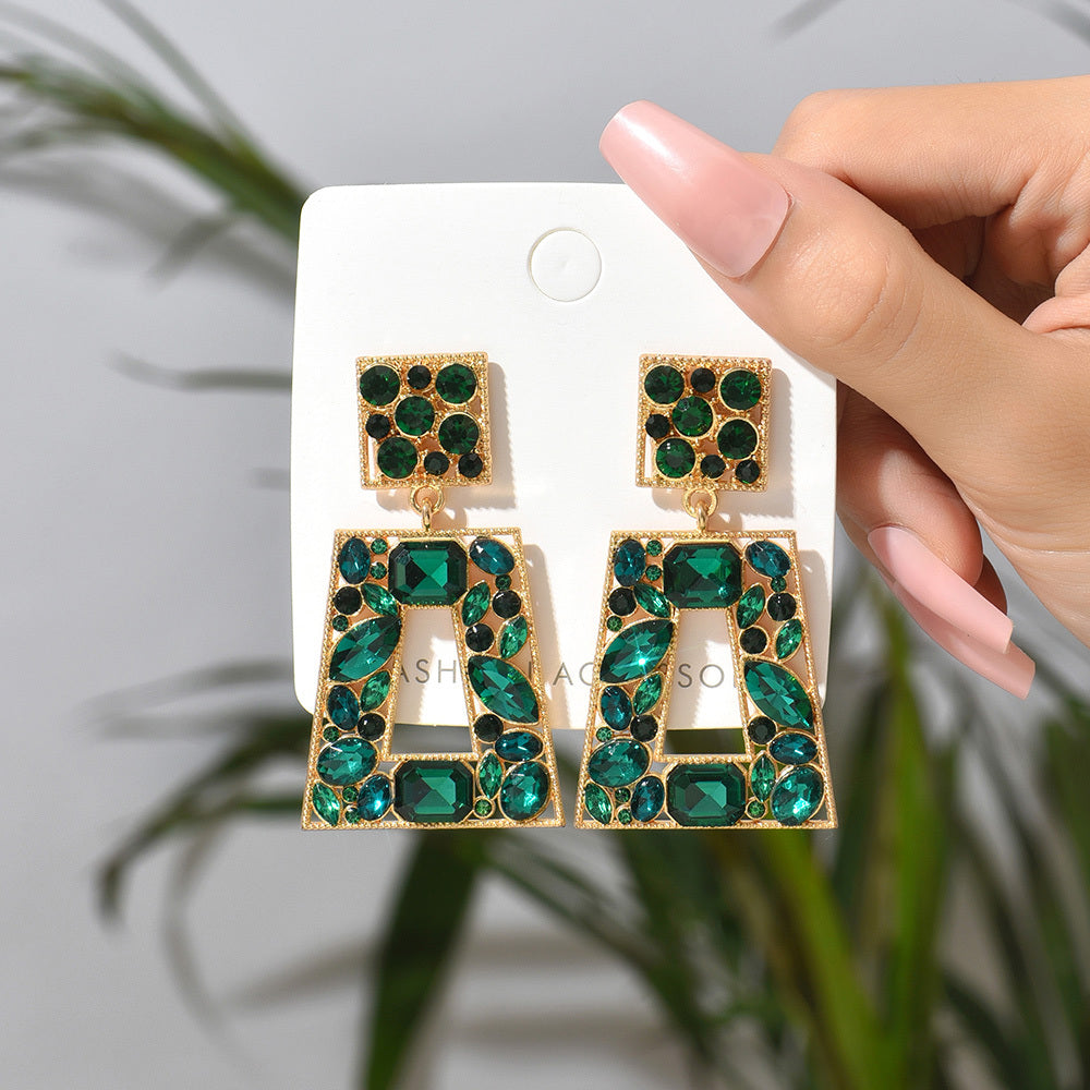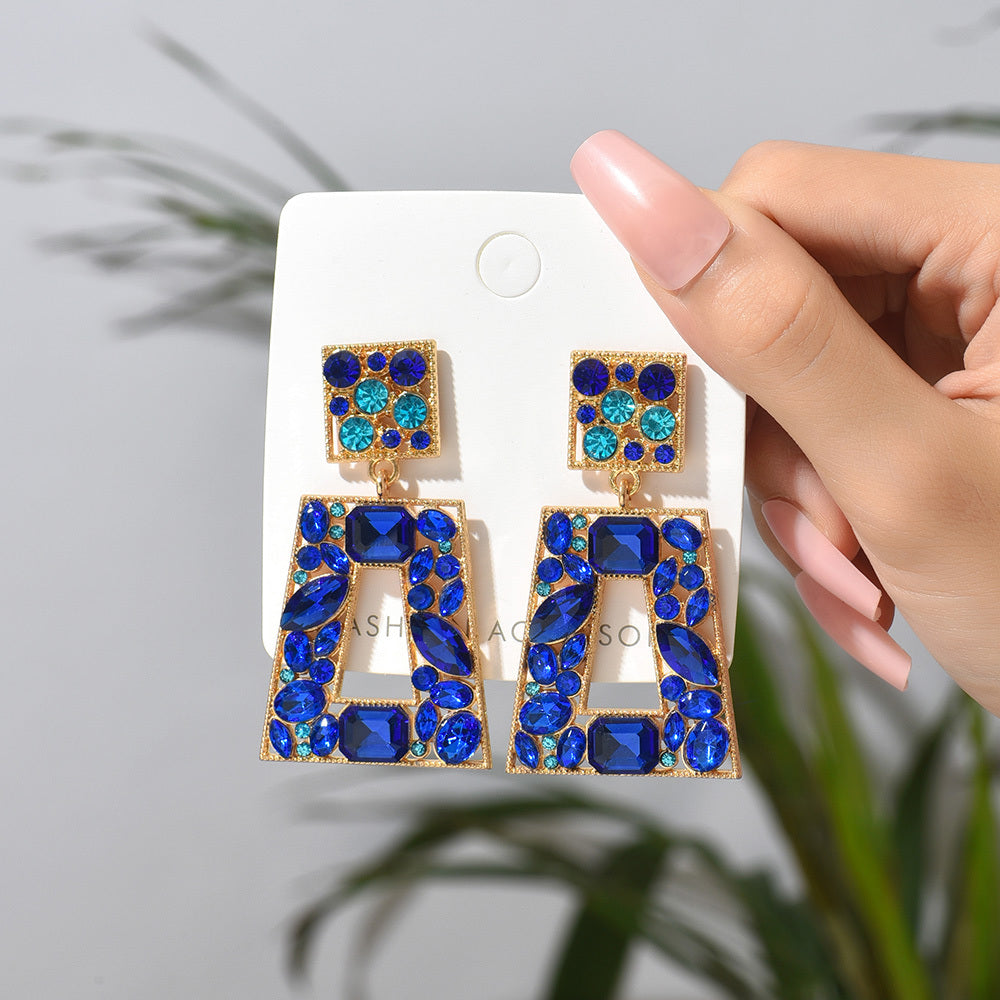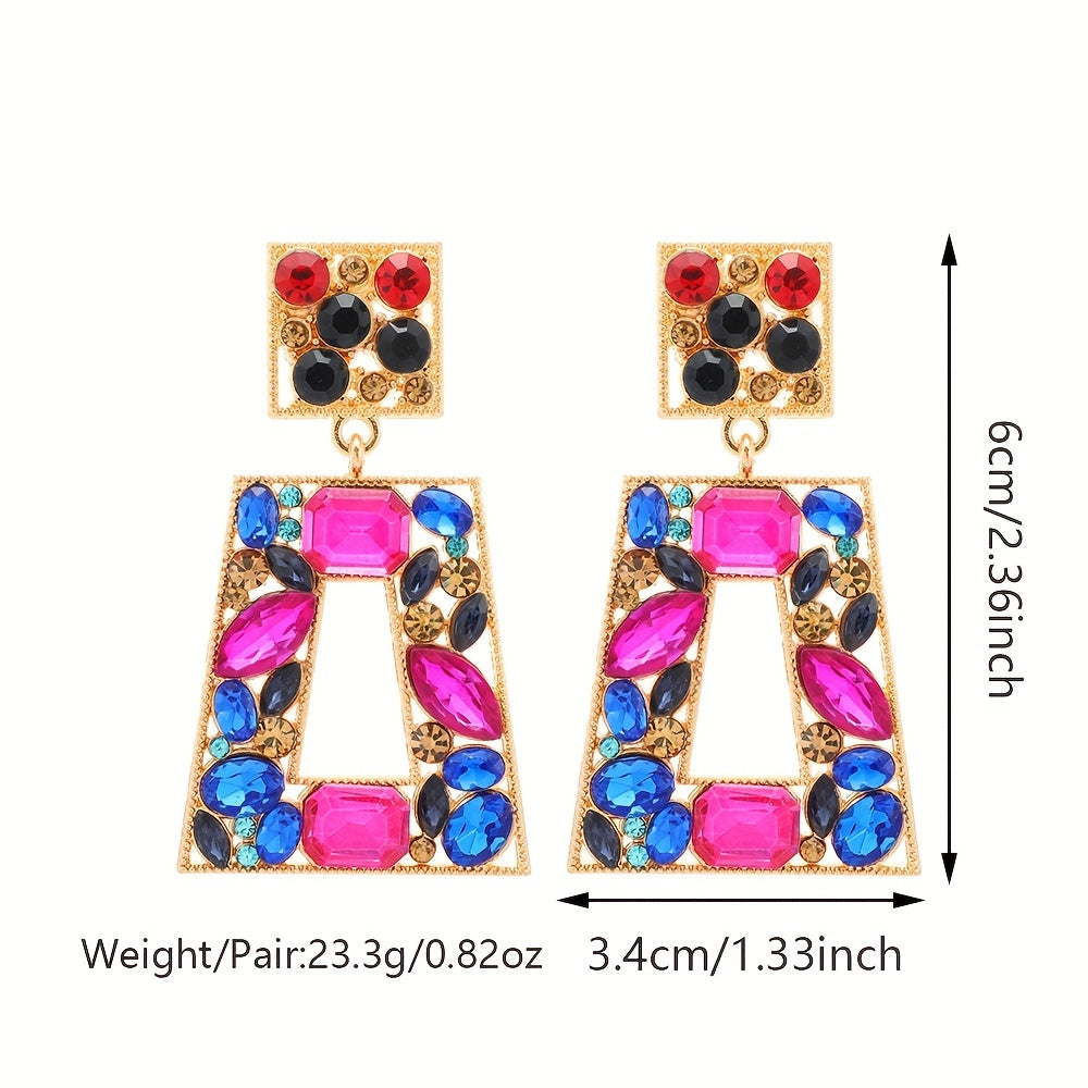 Elegant rhinestone pendant earrings that add a touch of glamour to your outfit for prom or party events.