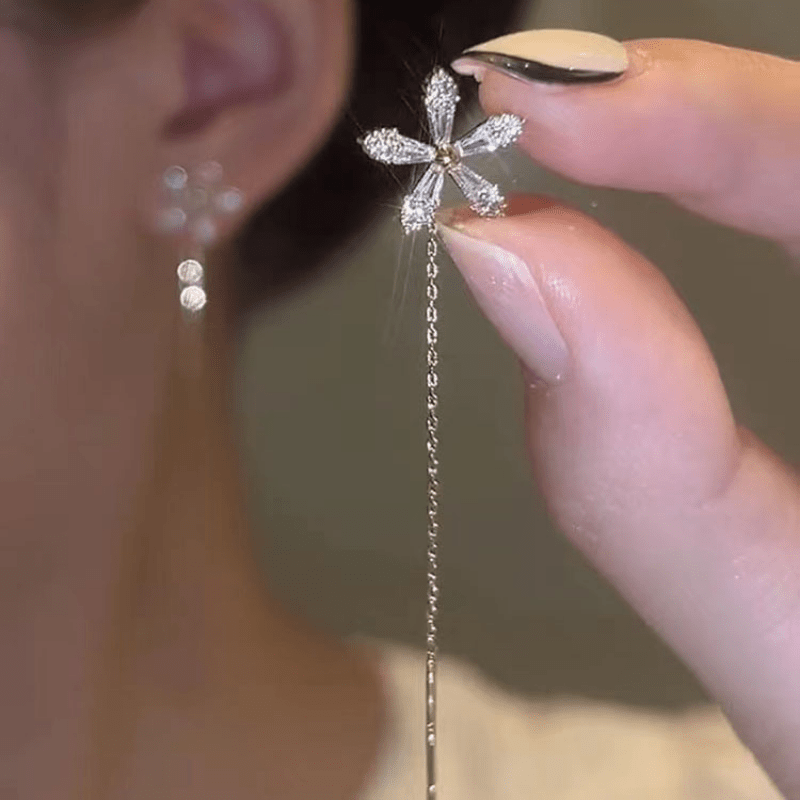 Add a touch of sparkle and elegance to your outfit with these flower tassel earrings featuring rhinestones. The long tassels add a trendy touch to any look.
