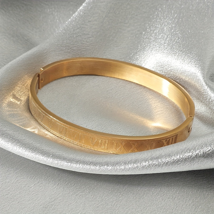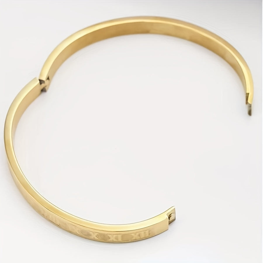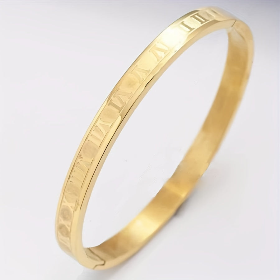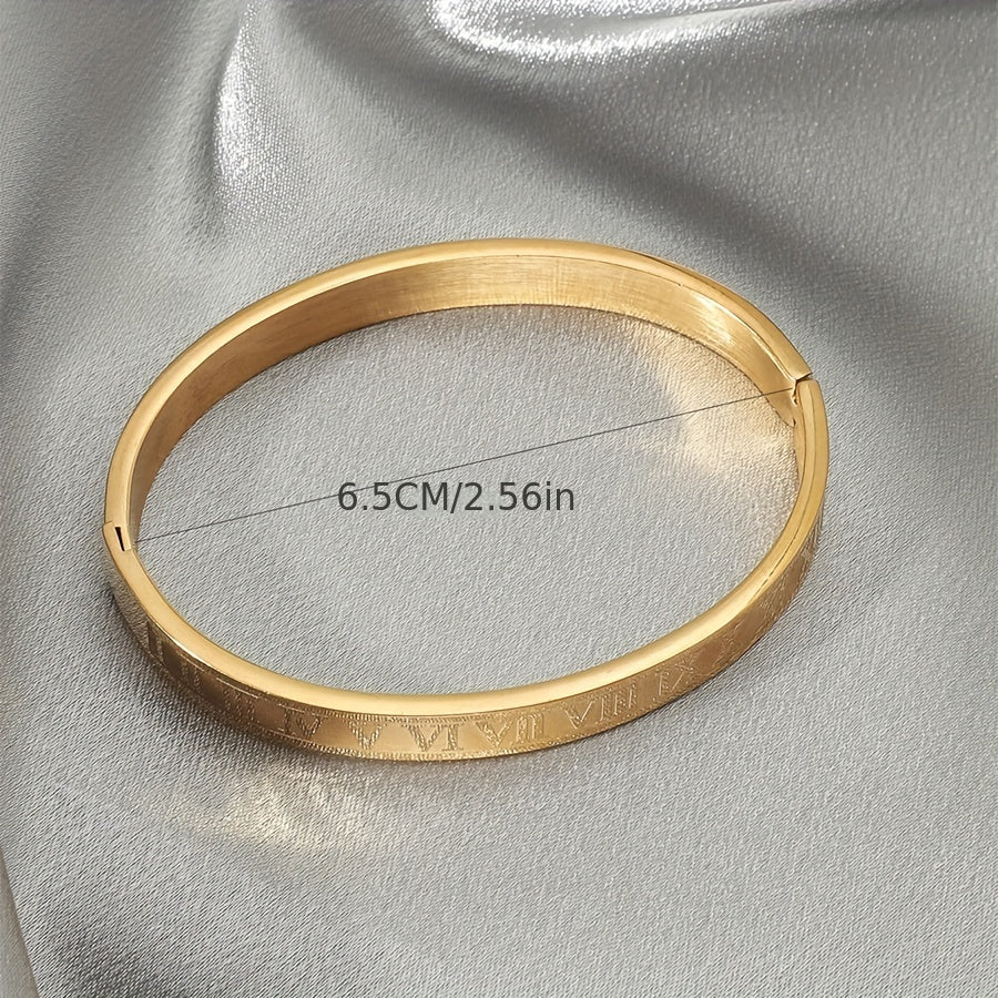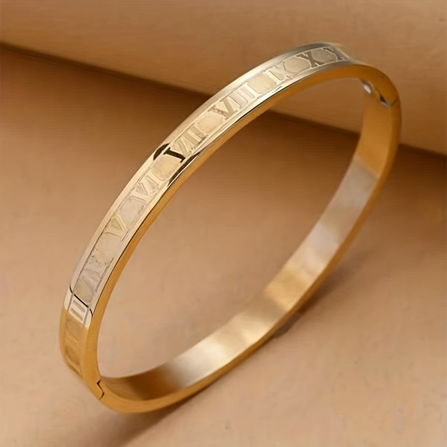 Add a touch of delicate elegance with this Roman numerals titanium steel bangle. Perfect for hip hop style enthusiasts, this hand jewelry makes a great gift for women at parties or special occasions.