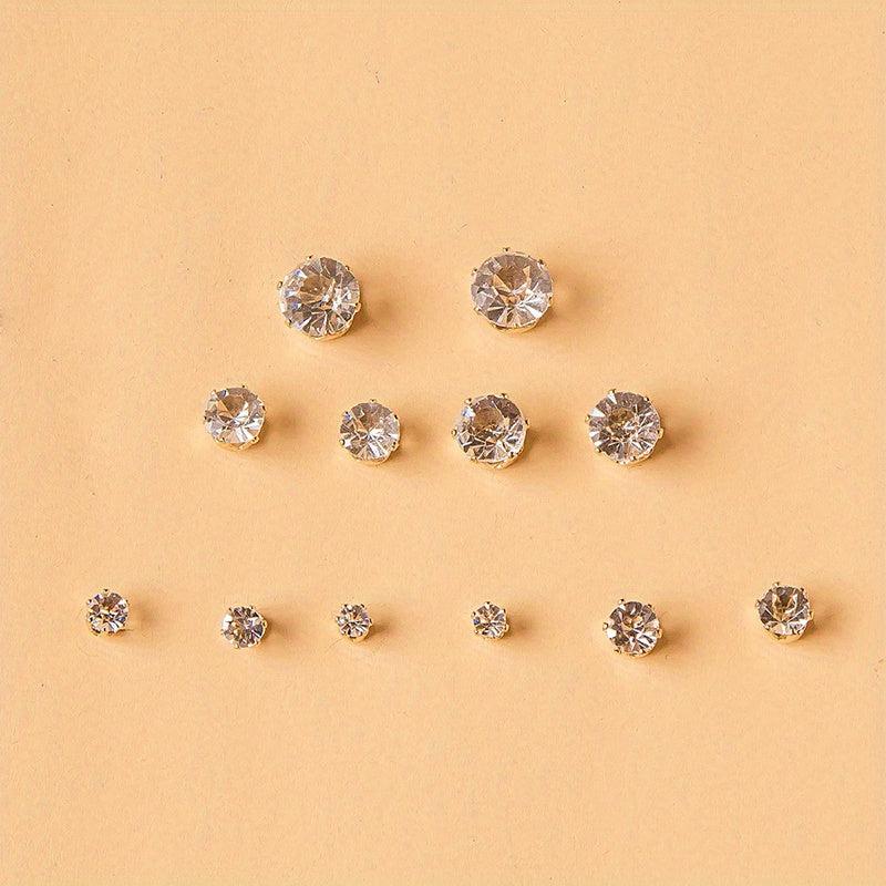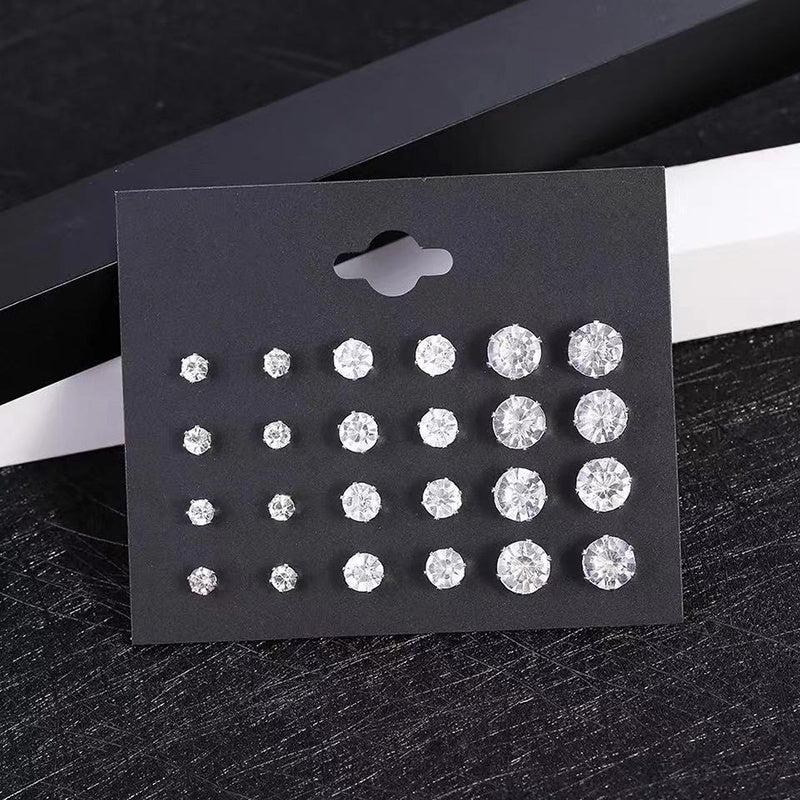 Round 6 Claw Crystal Zircon Earrings 12 Pairs Pack