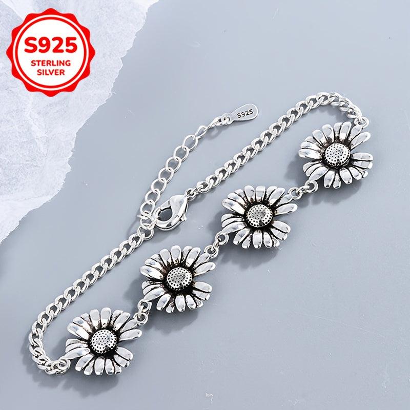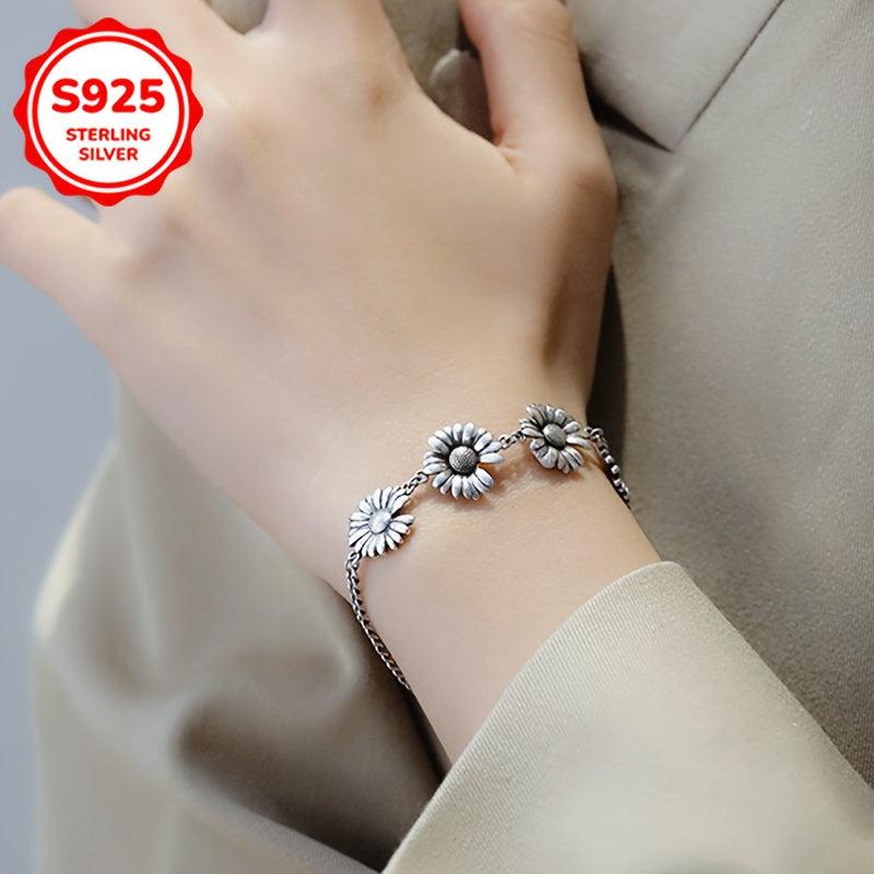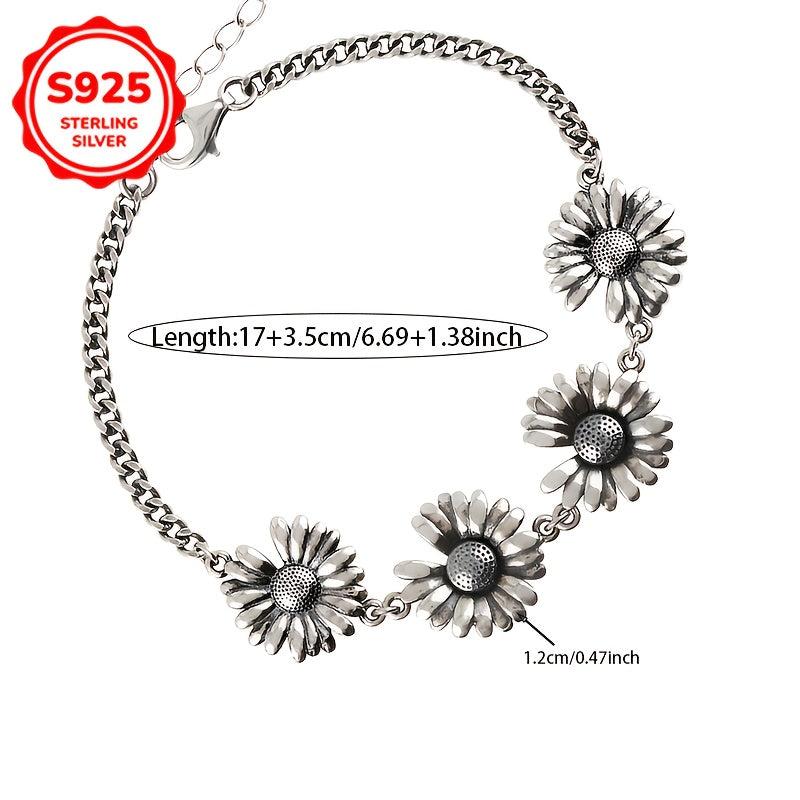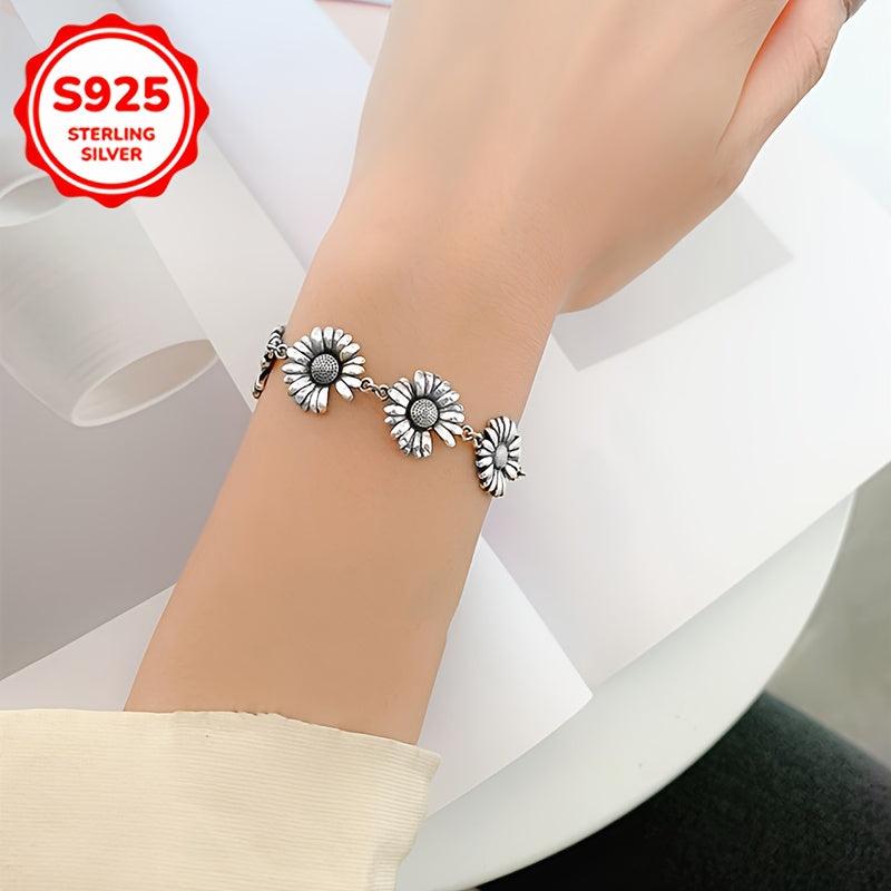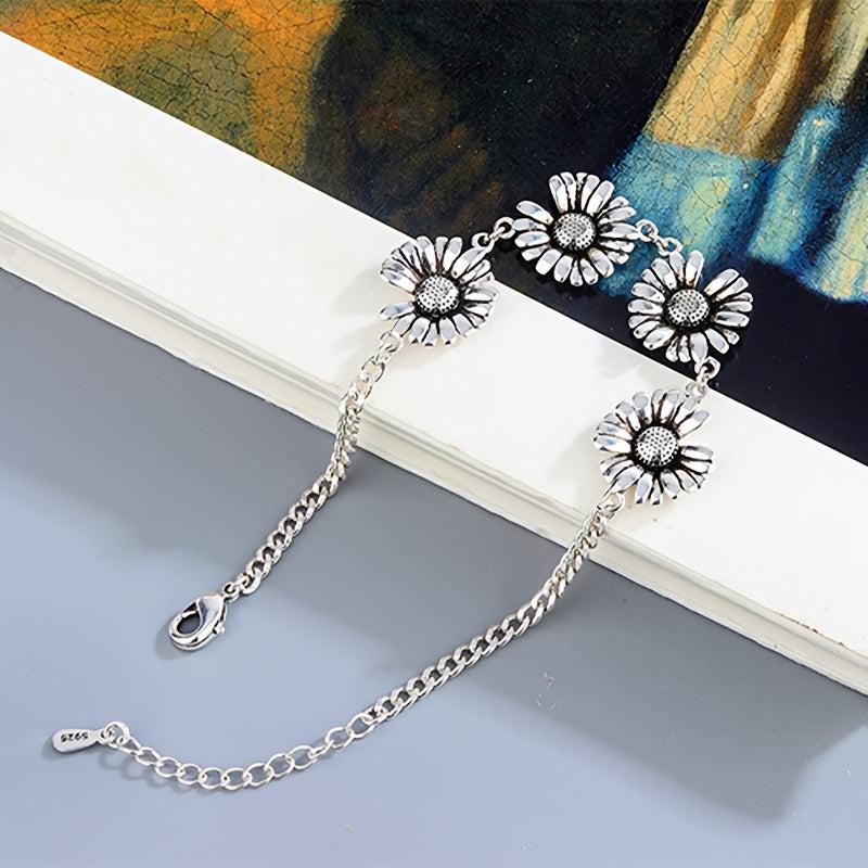 This S925 Low Allergy Small Daisy Bracelet is the perfect accessory for everyday wear. It is a creative and minimalist design featuring a sunflower charm. Ideal gift for friends or special someone on Valentine's Day.