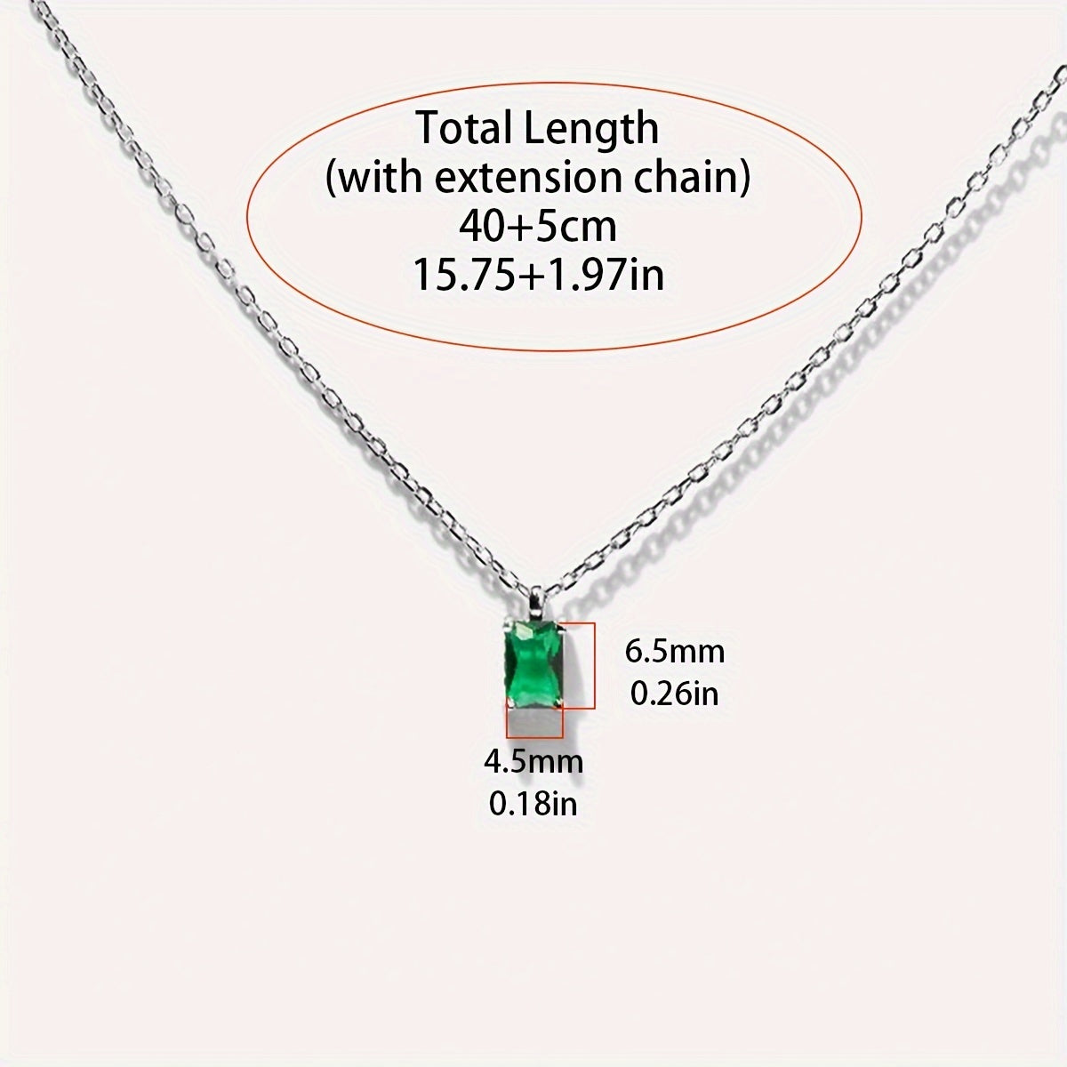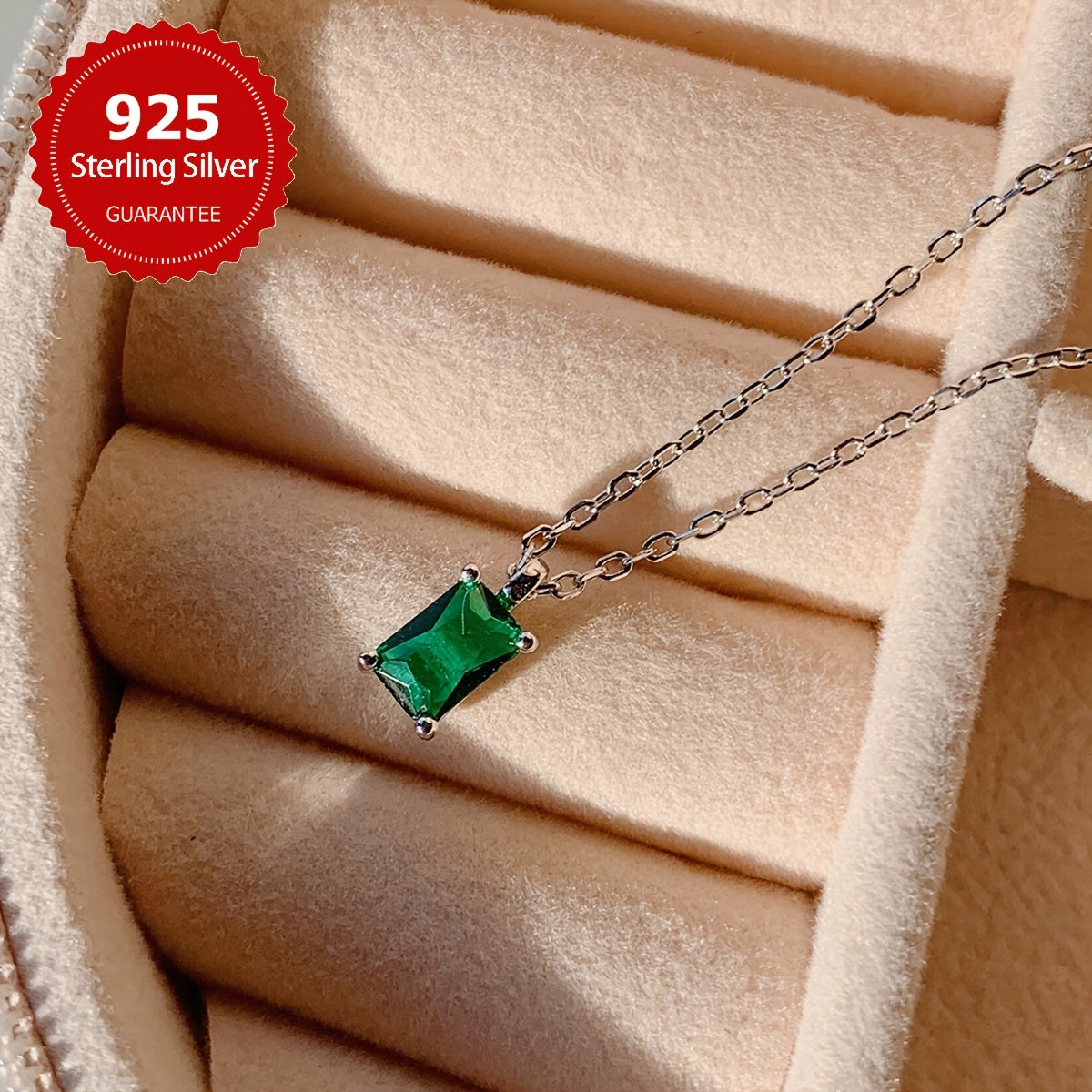 This elegant necklace features a sugar cube design with high-quality 5A green synthetic zirconia stones on a S925 pure silver chain. Perfect for adding a touch of glamour to any outfit.