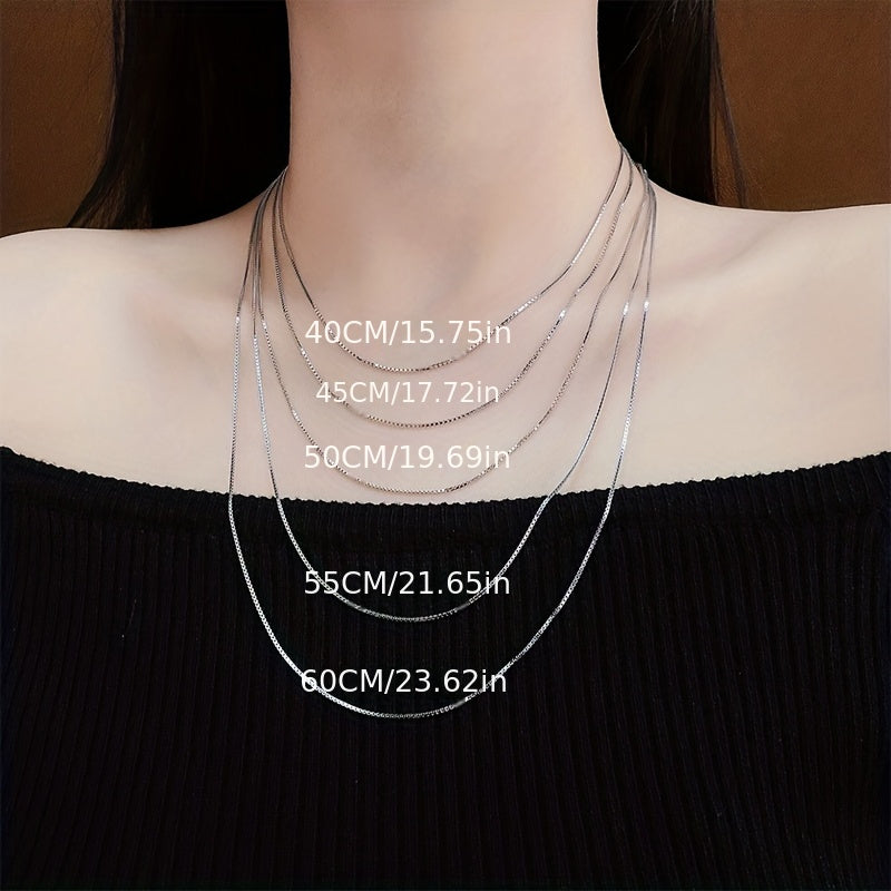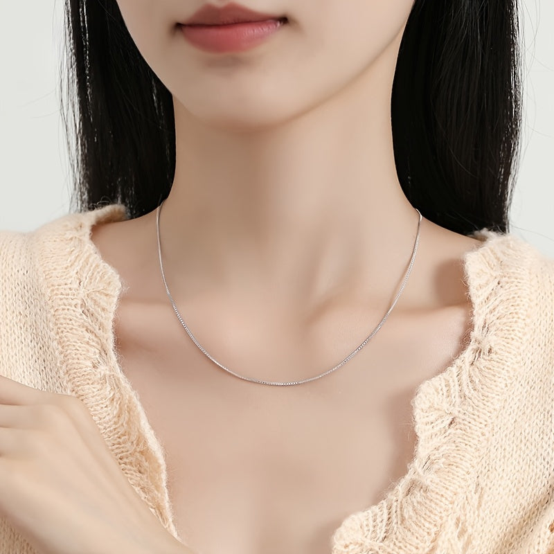 This S925 silver box chain necklace is perfect for any occasion, from weddings to banquets. It's a fine silver clavicle chain with a preppy and sporty style that will complement your outfit all season long.