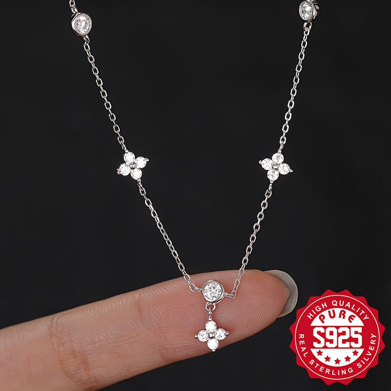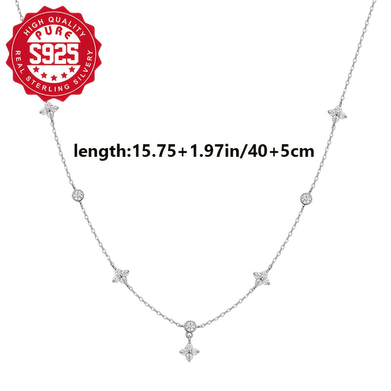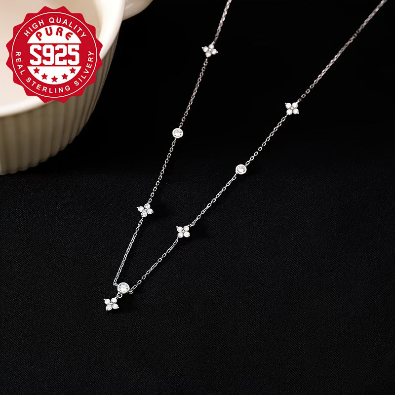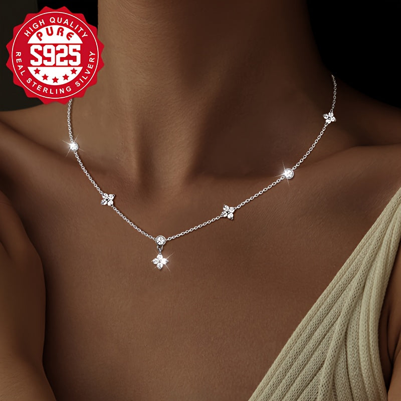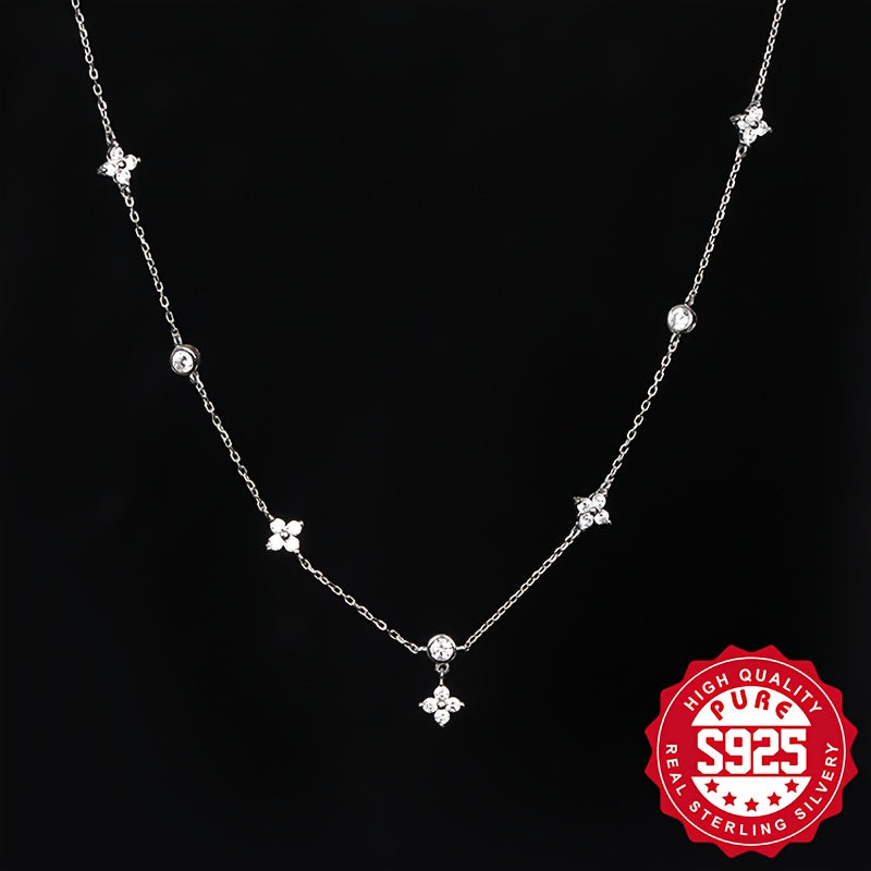 This delicate S925 silver necklace features five flowers, perfect for daily wear. It is lightweight, versatile, and hypoallergenic, making it a great gift for women.