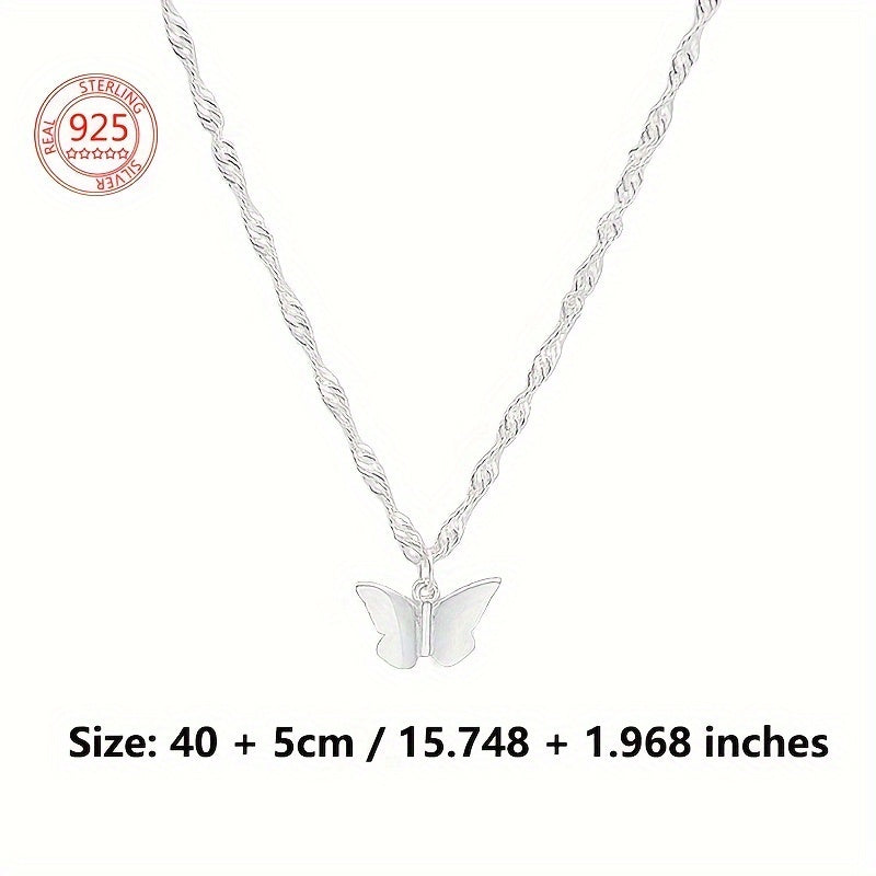 This S925 pure silver necklace features a delicate forest butterfly design, perfect for adding a touch of sweetness and elegance to any outfit. Weighs about 3g.