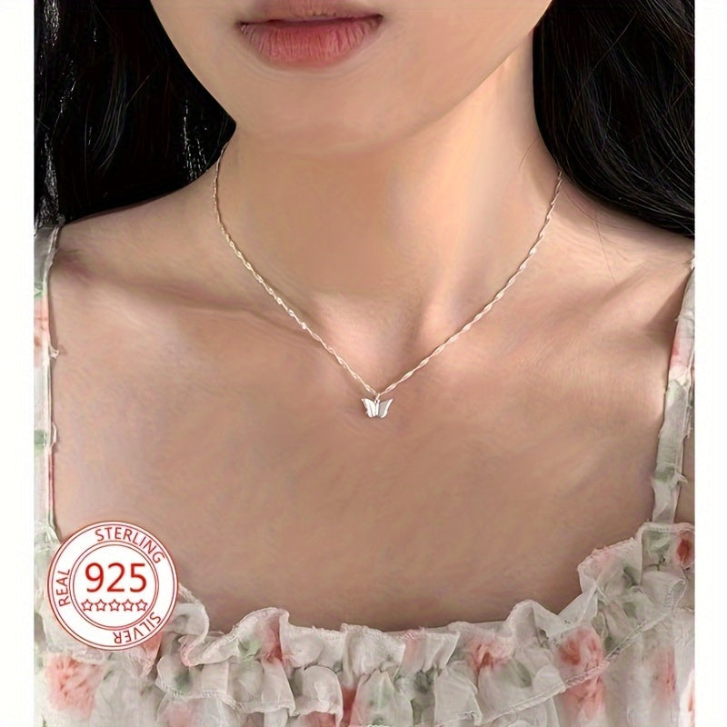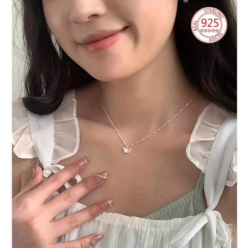 S925 Silver Forest Butterfly Necklace - Sweet & Elegant Clavicle Chain