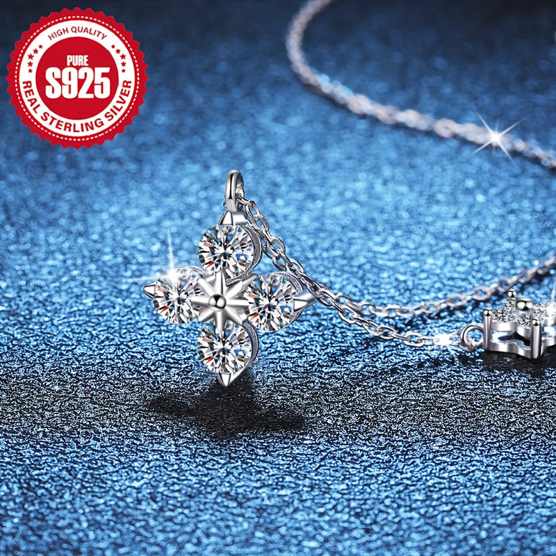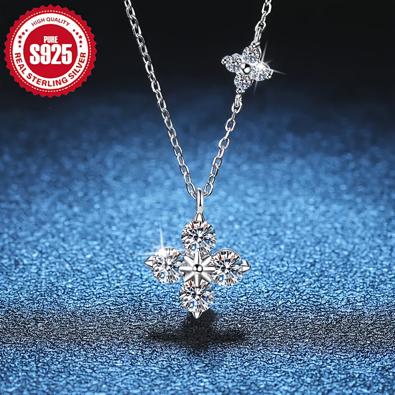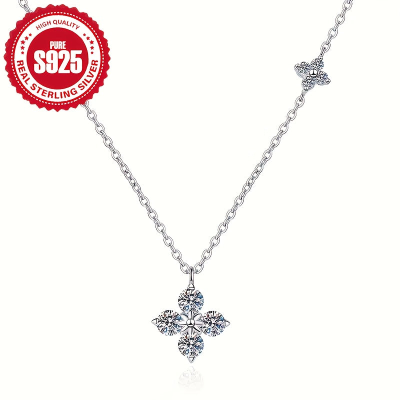 This stunning necklace is crafted from S925 silver and features a four petal flower design. It adds a touch of luxury and elegance to any outfit, making it perfect for holiday wear or daily use. The necklace is also suitable for parties and events, making it a versatile addition to any jewelry collection. Its low allergy properties make it safe for sensitive skin.