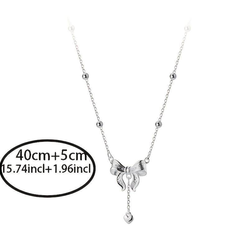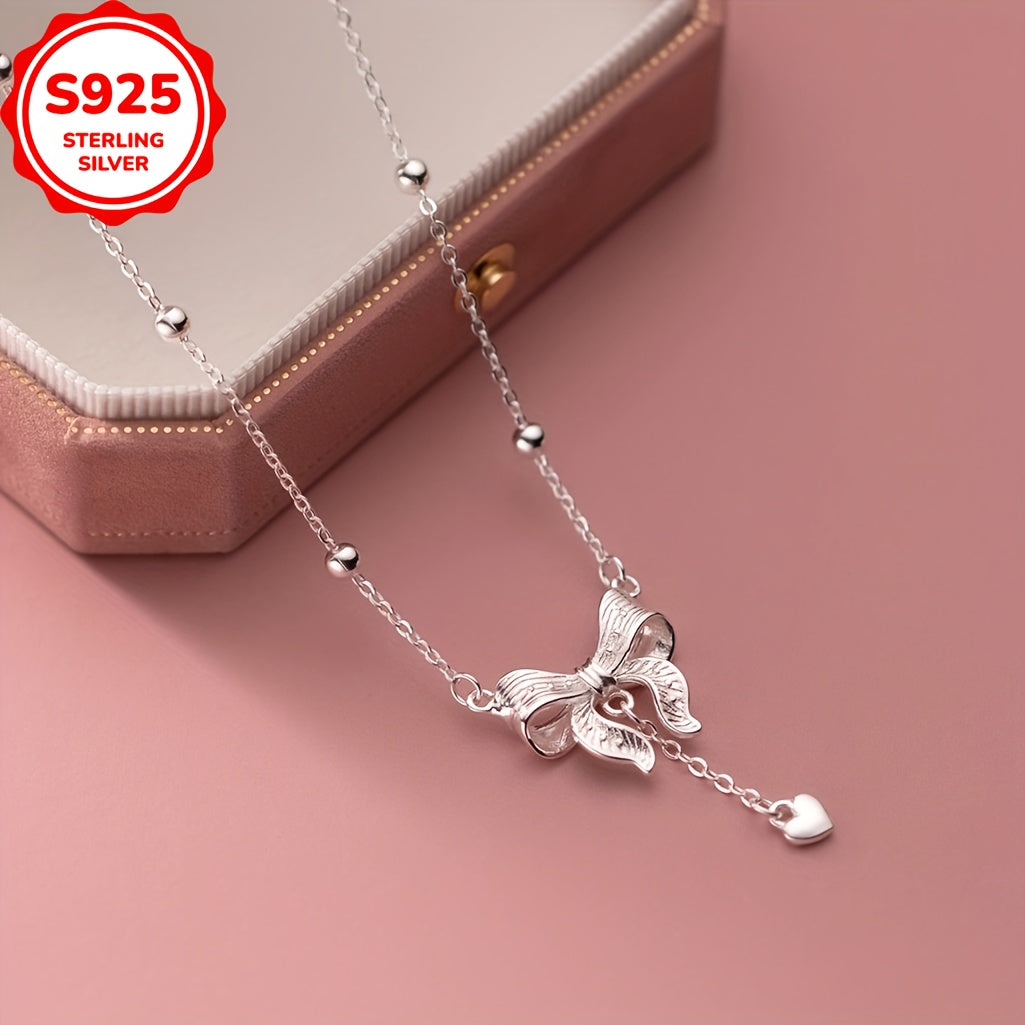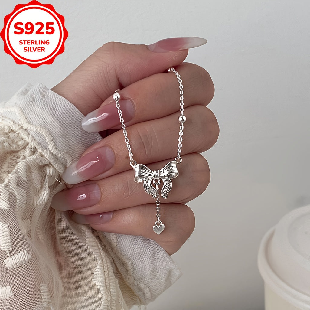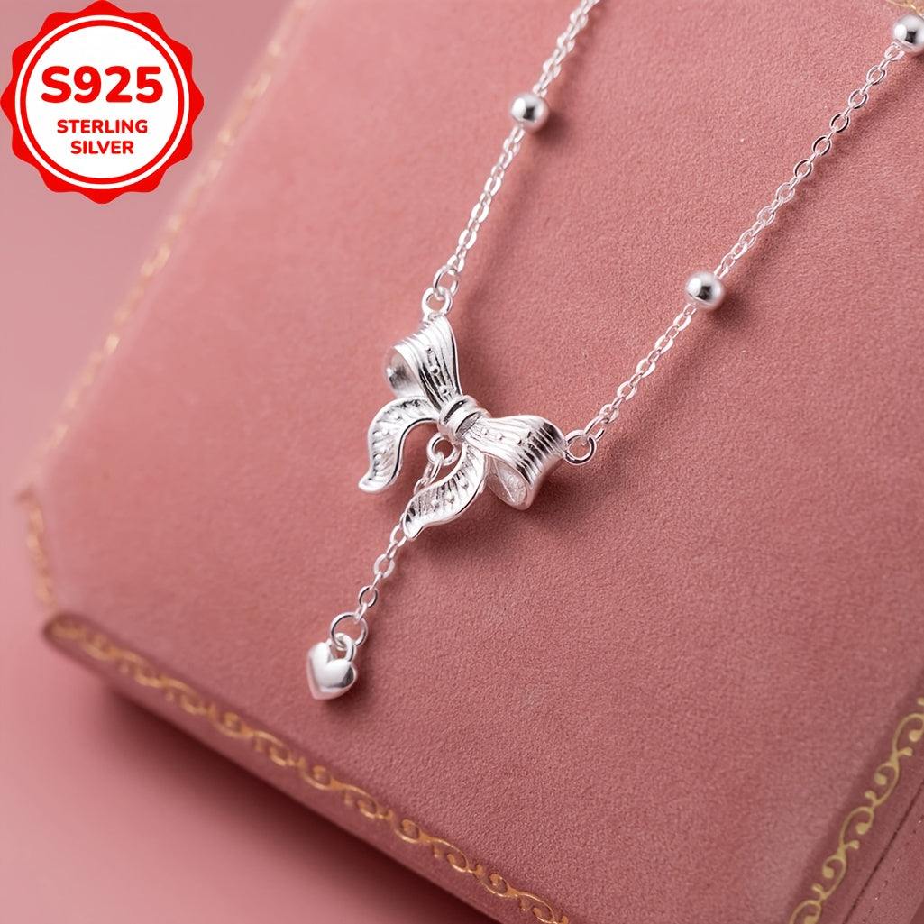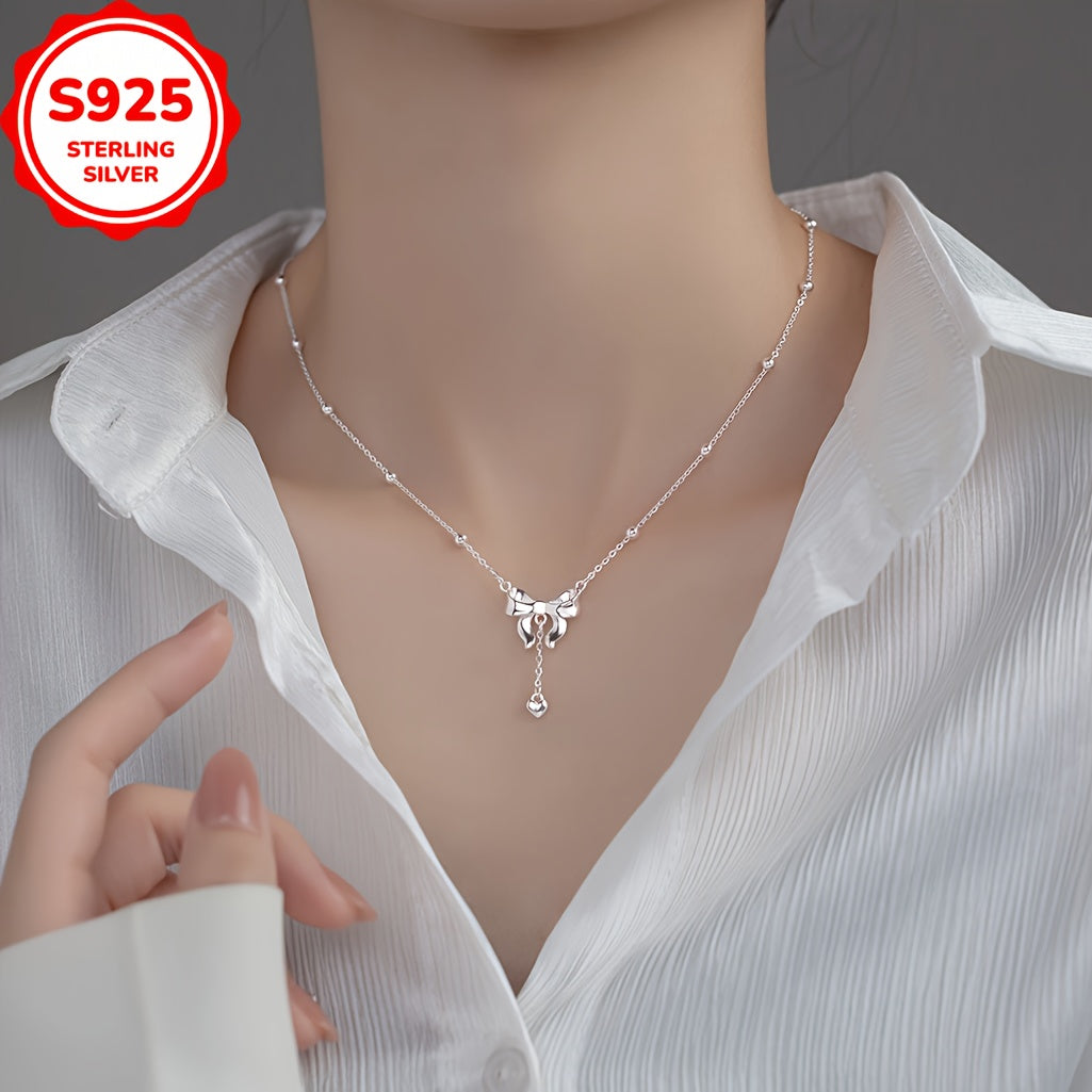 Elegant S925 silver necklace featuring a princess design with a bow and tassel pendant. Perfect for adding a touch of love to any outfit.