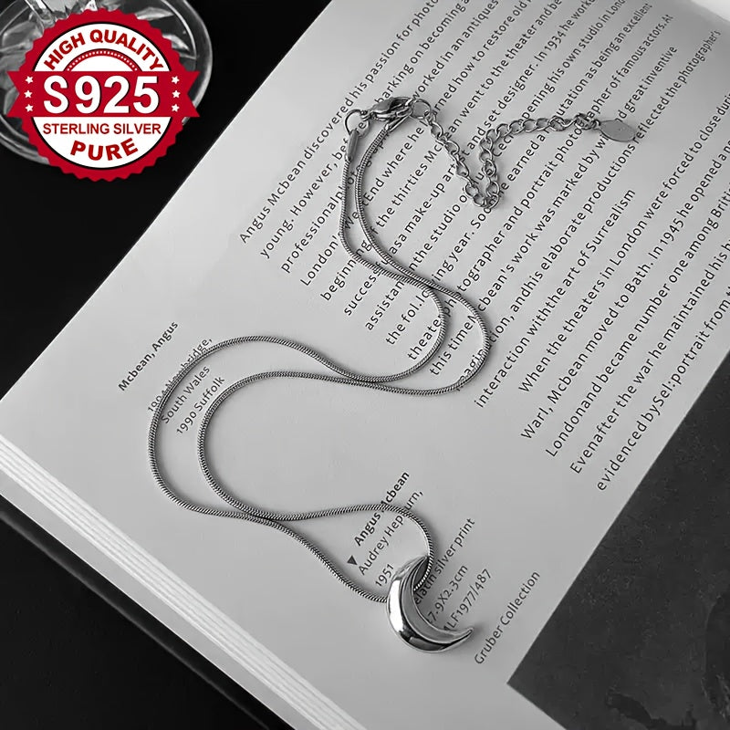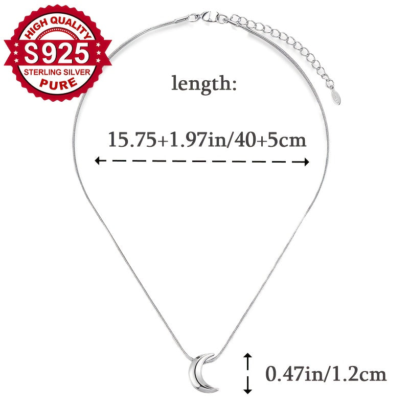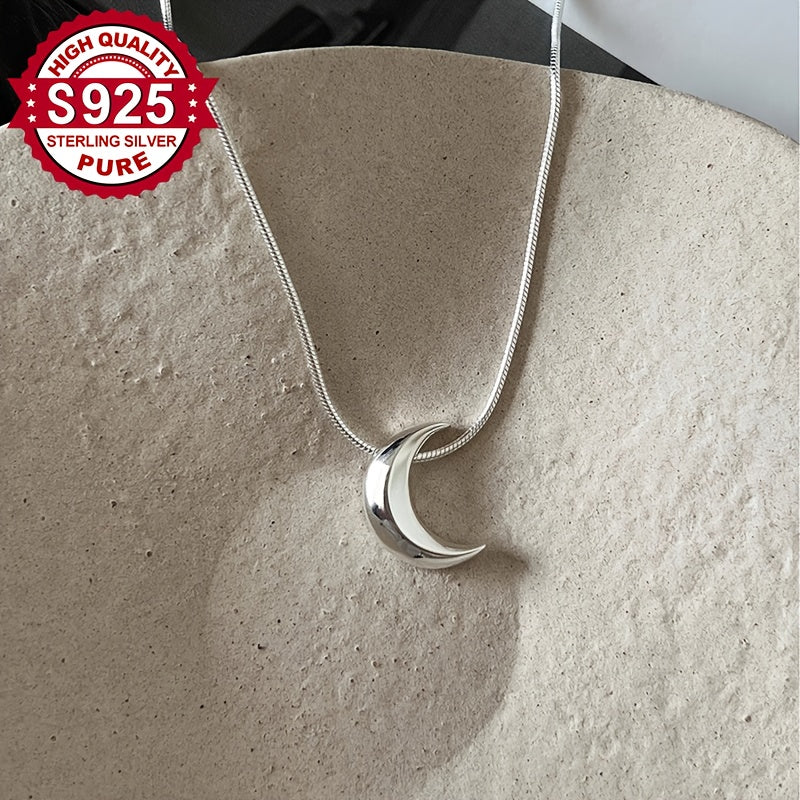 S925 Silver Moon Pendant Necklace, Low Allergy, Daily Wear, 3.3g