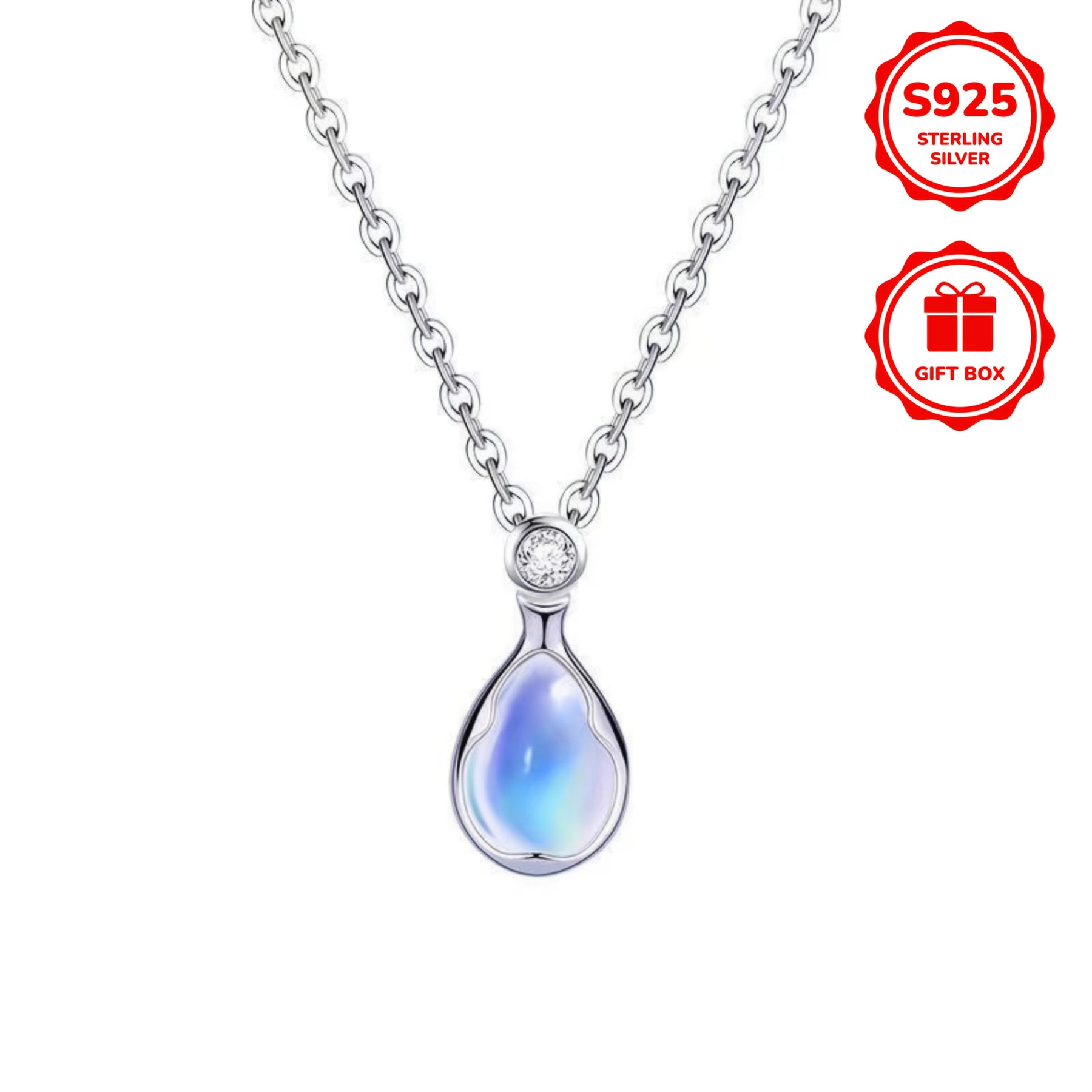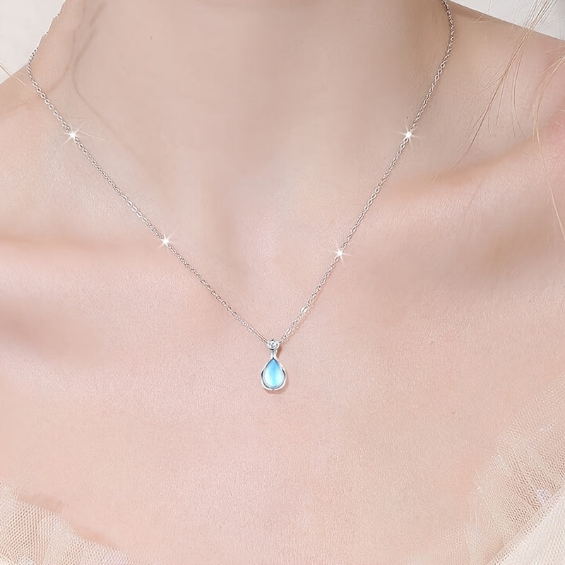 Elegant ladies' pendant necklace made of hypoallergenic S925 silver. Features a teardrop-shaped moonstone known as The Angel's Tear. Weighs 4 grams.