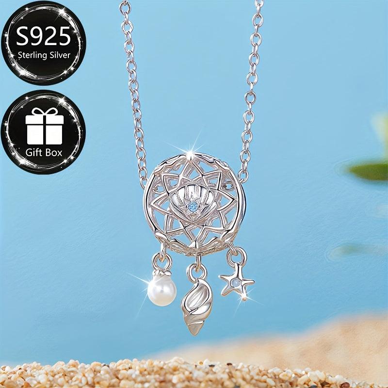 S925 Silver Pendant Ocean Charm with Zirconia - Ideal for Daily & Vacation Wear