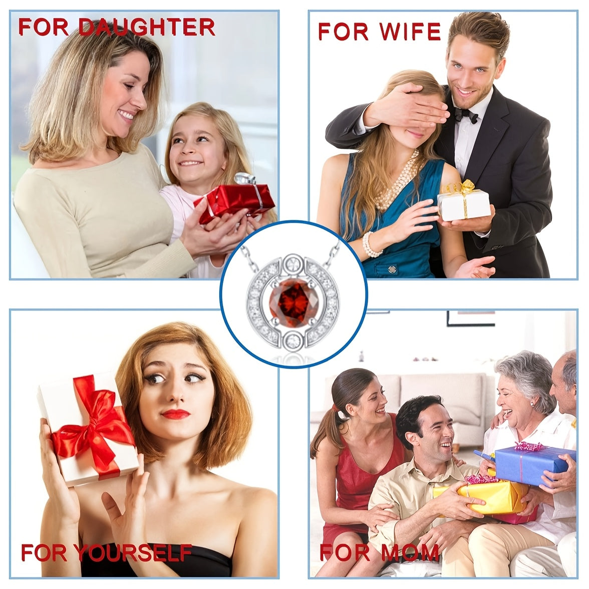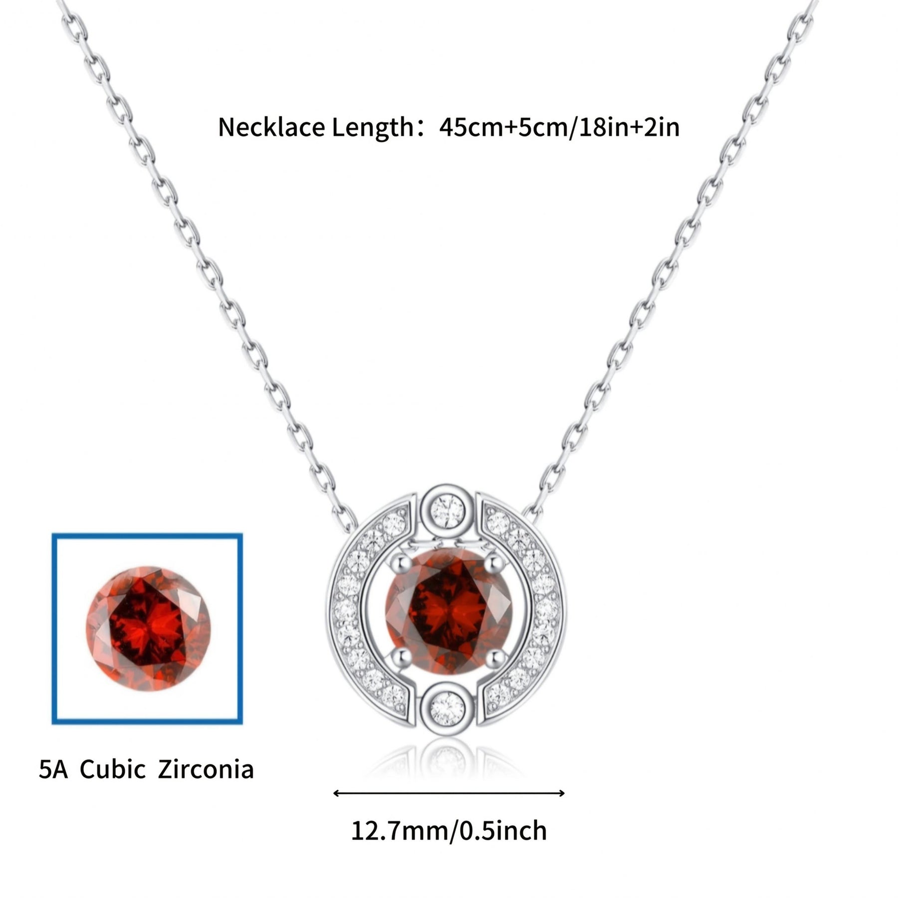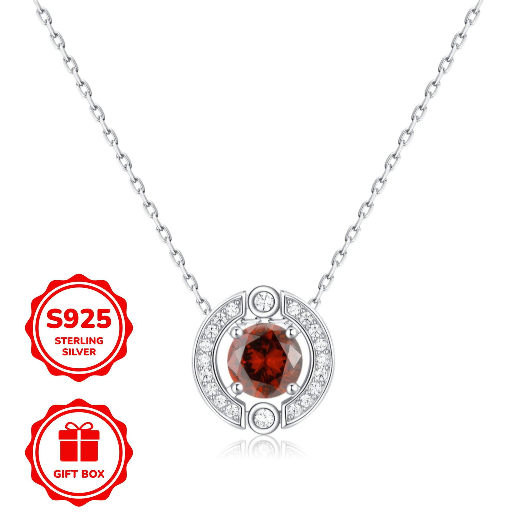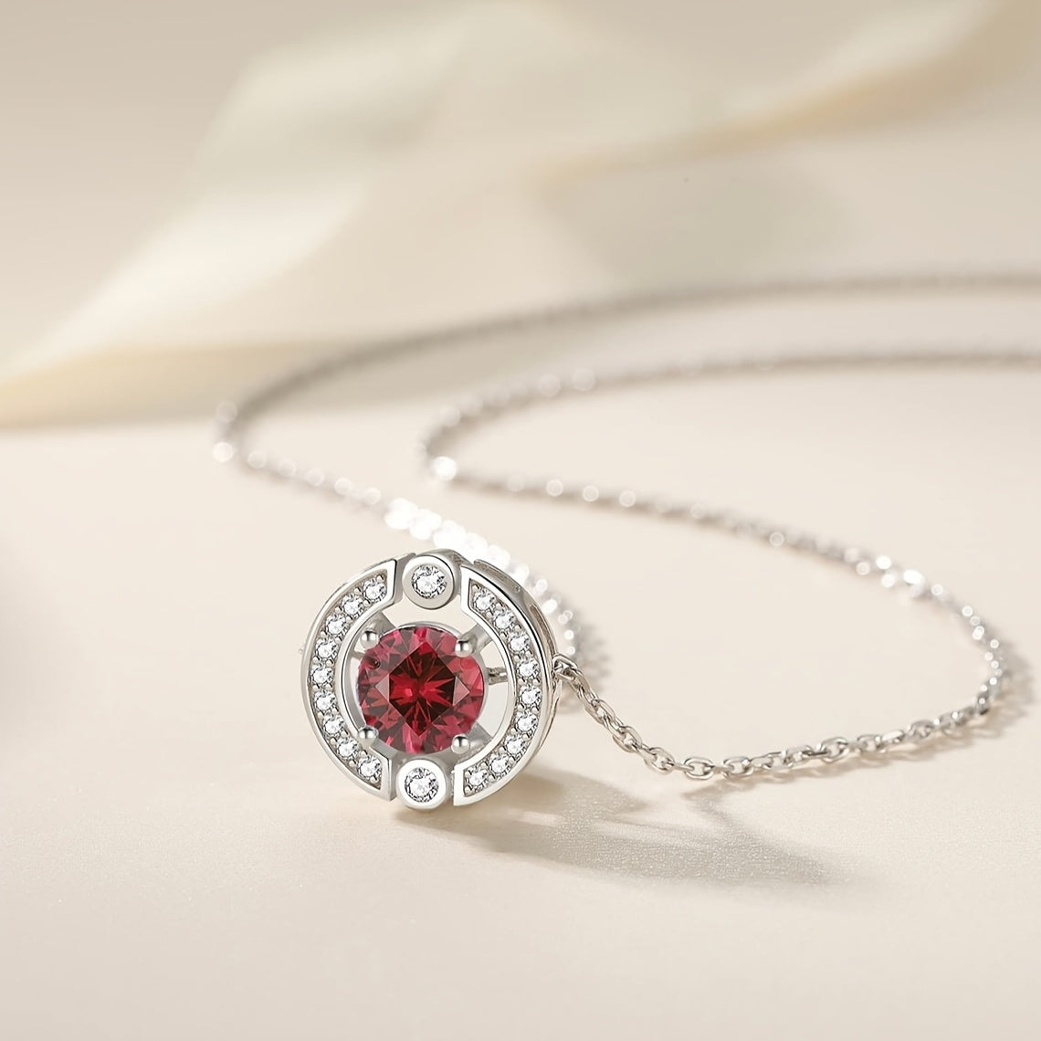 Elegant pendant necklace crafted from S925 silver featuring a round 5A cubic zirconia in vibrant red, perfect gift for your girlfriend. Hypoallergenic.