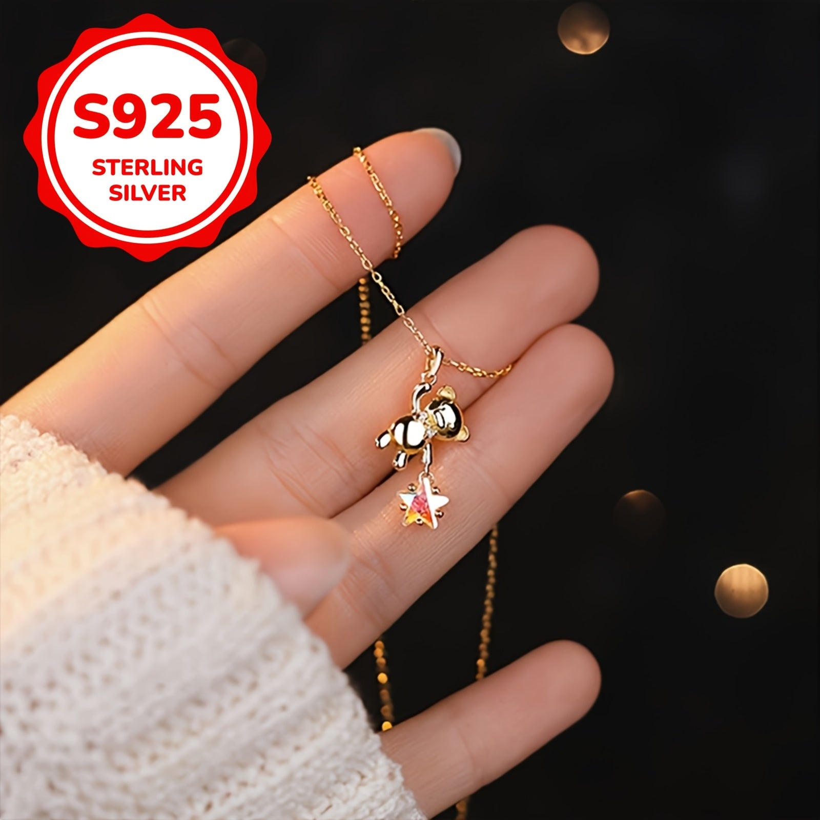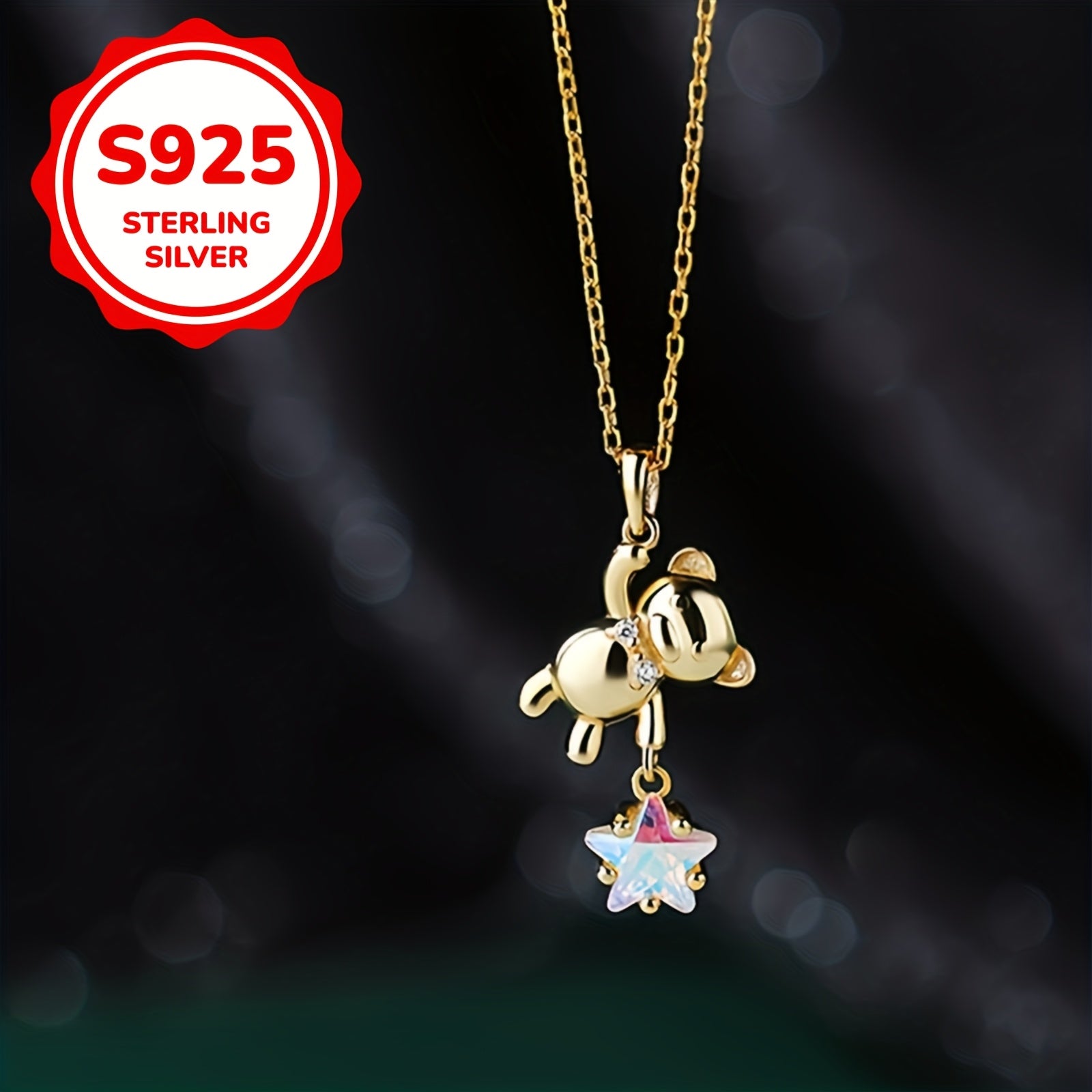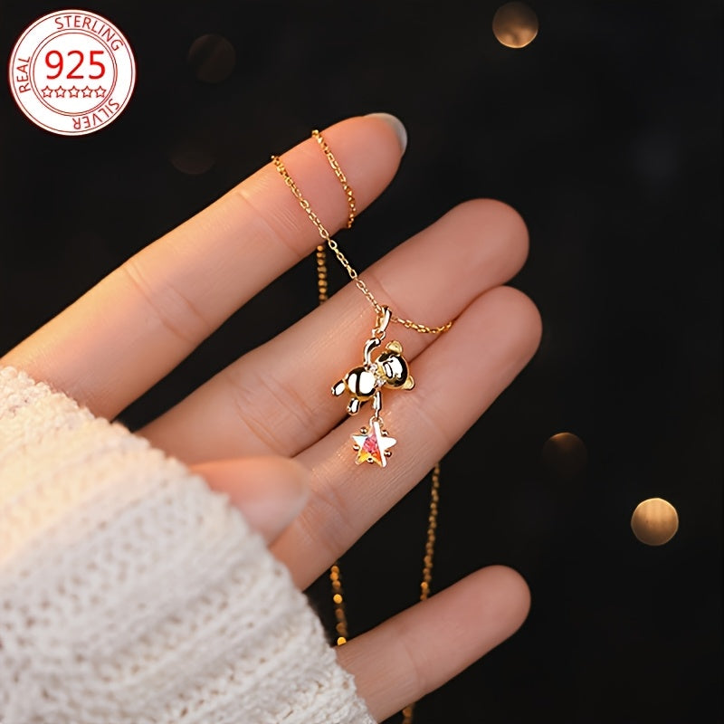 Elevate your daily style with this exquisite S925 silver star bear necklace, a perfect accessory to adorn for Eid al-Fitr celebrations.
