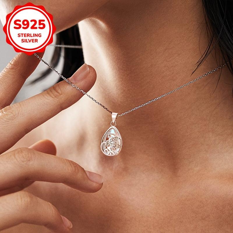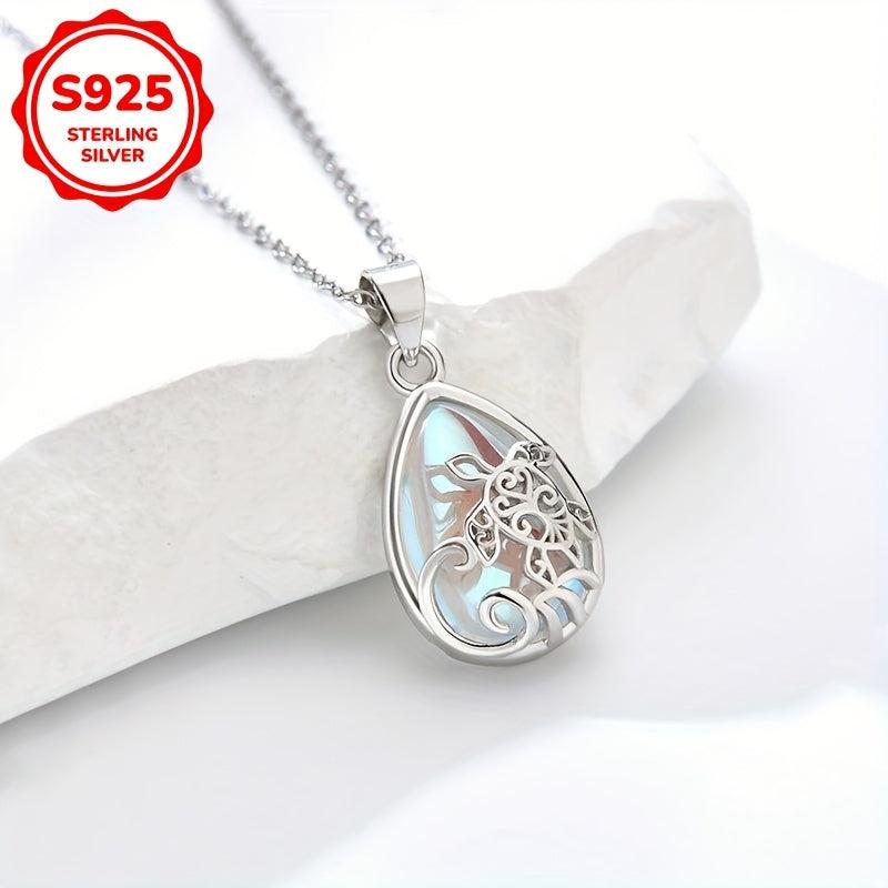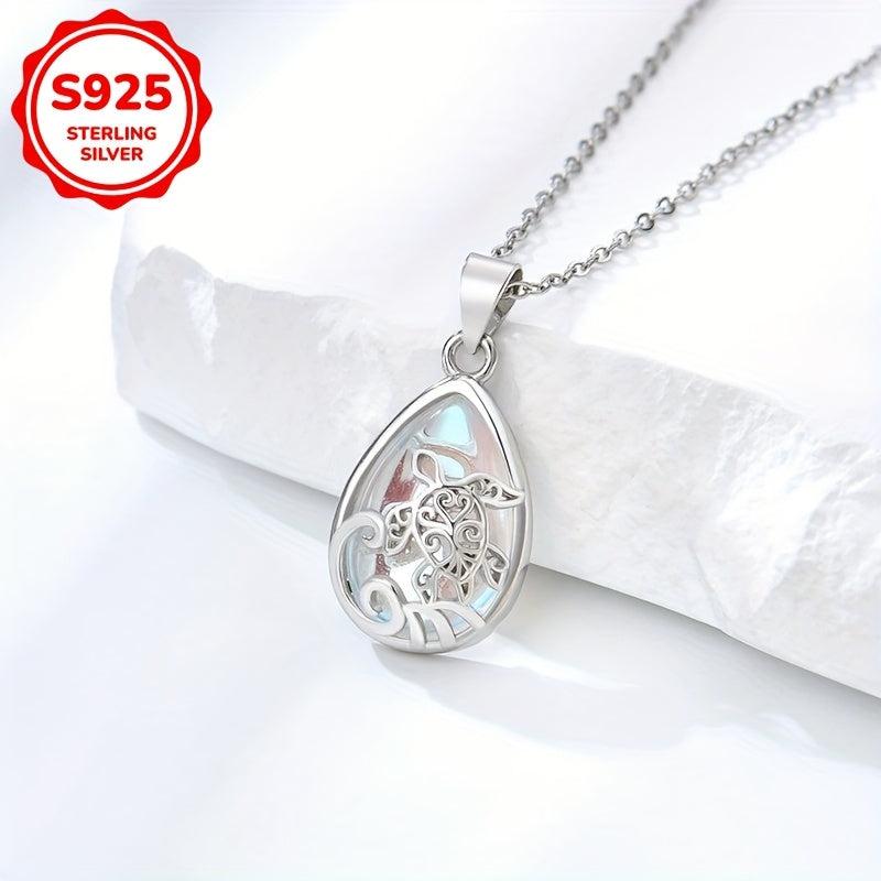 Elevate your summer style with this elegant pendant necklace crafted from S925 silver. The necklace features a charming turtle design with a beautiful moonstone, perfect for your vacations.