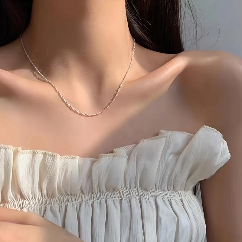 Elevate your style with this elegant S925 silver wave chain necklace, suitable for casual wear. A perfect gift for women.