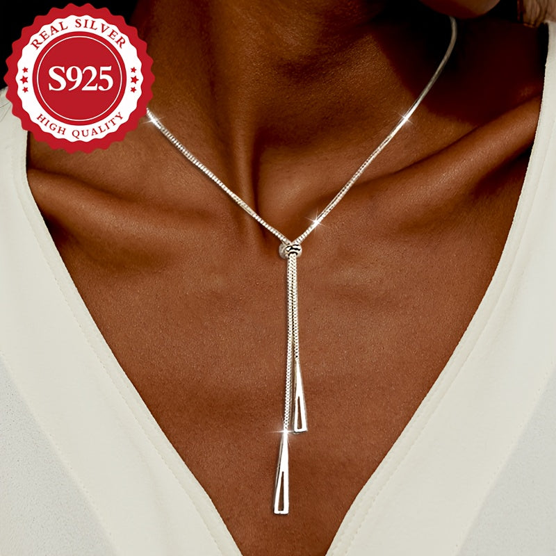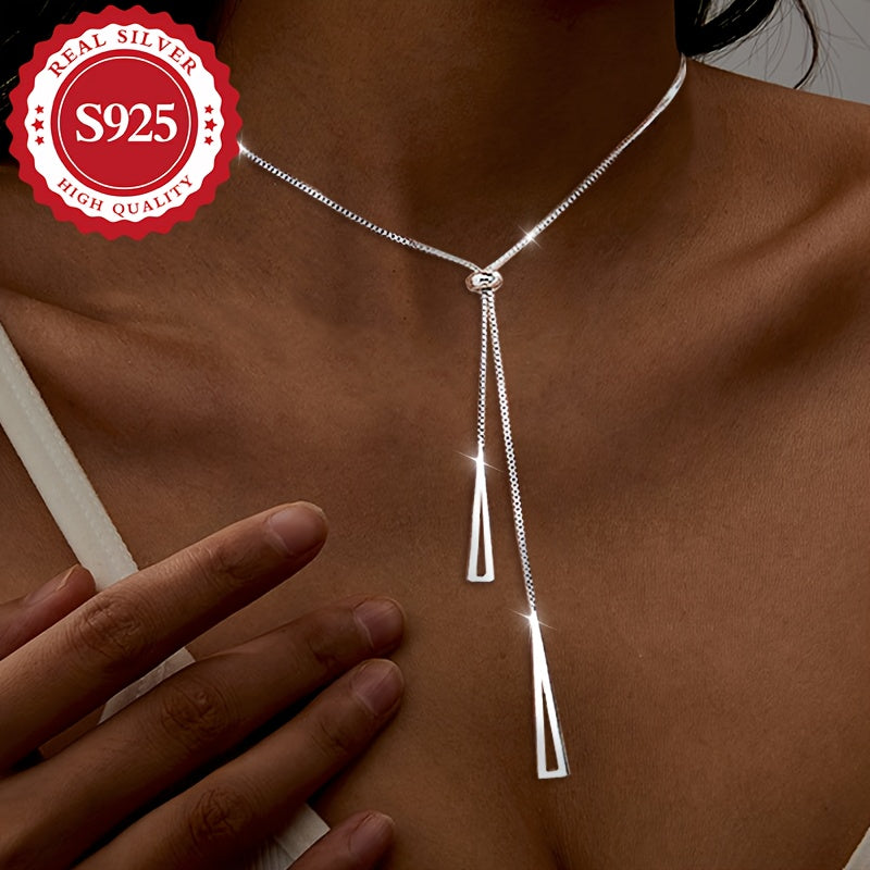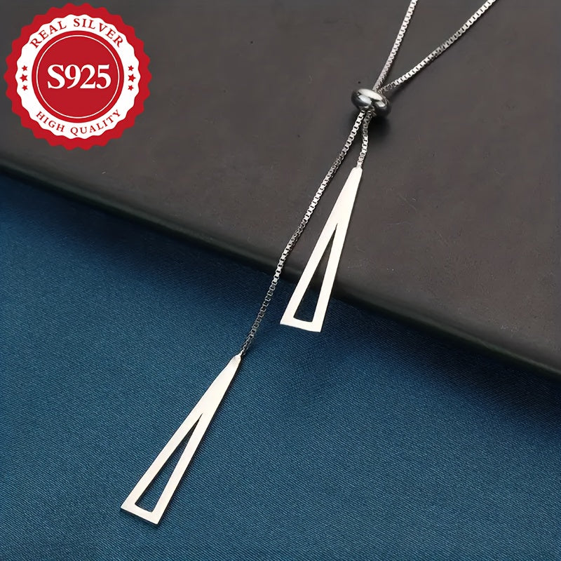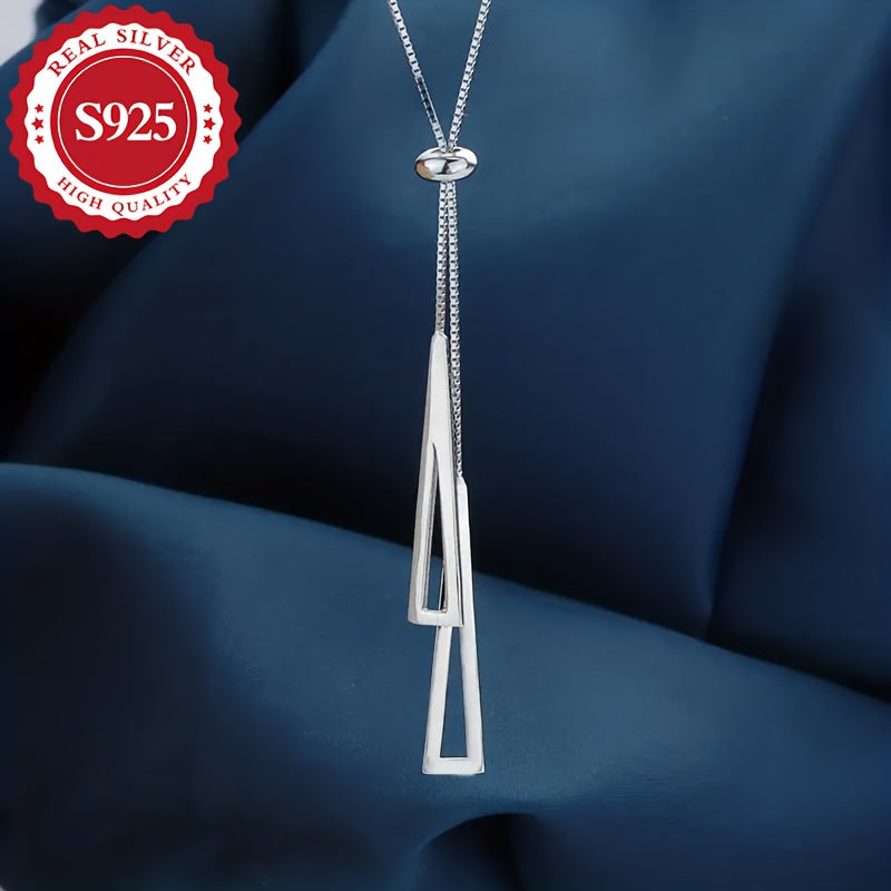 This vintage-inspired necklace features a box style triangular pendant made of S925 silver. The adjustable pull design ensures a perfect fit while the low allergy material provides a comfortable wear. Weighs 2.5g.