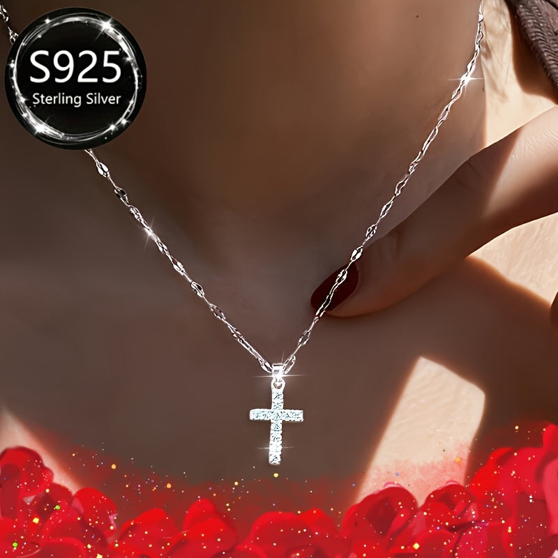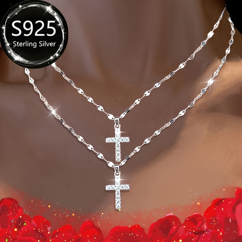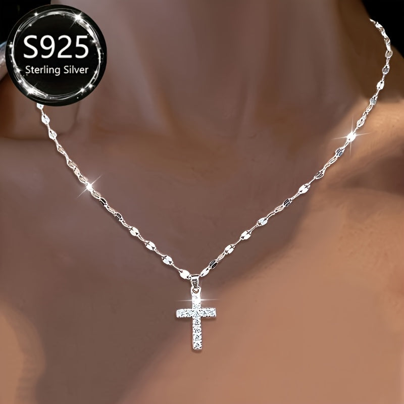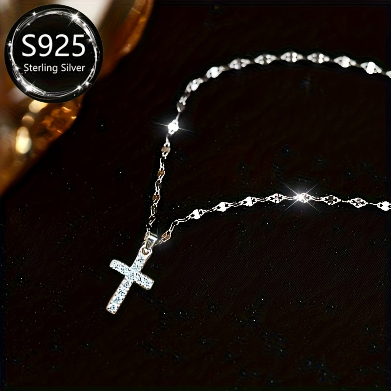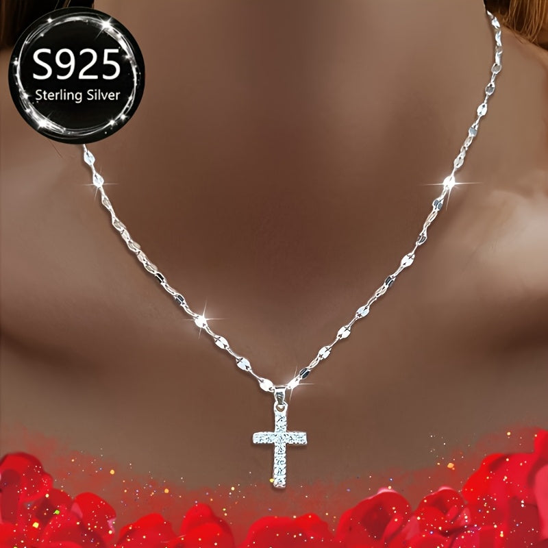 This stunning S925 pure silvery necklace features a lip pendant with a cross, perfect for all seasons and daily wear. It is a versatile and ideal choice for any occasion.