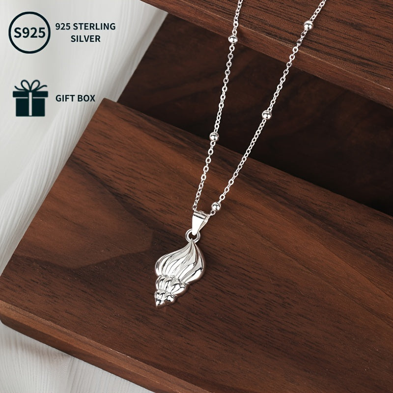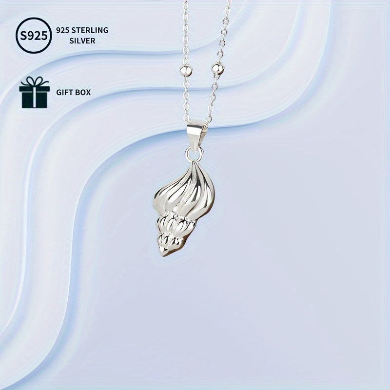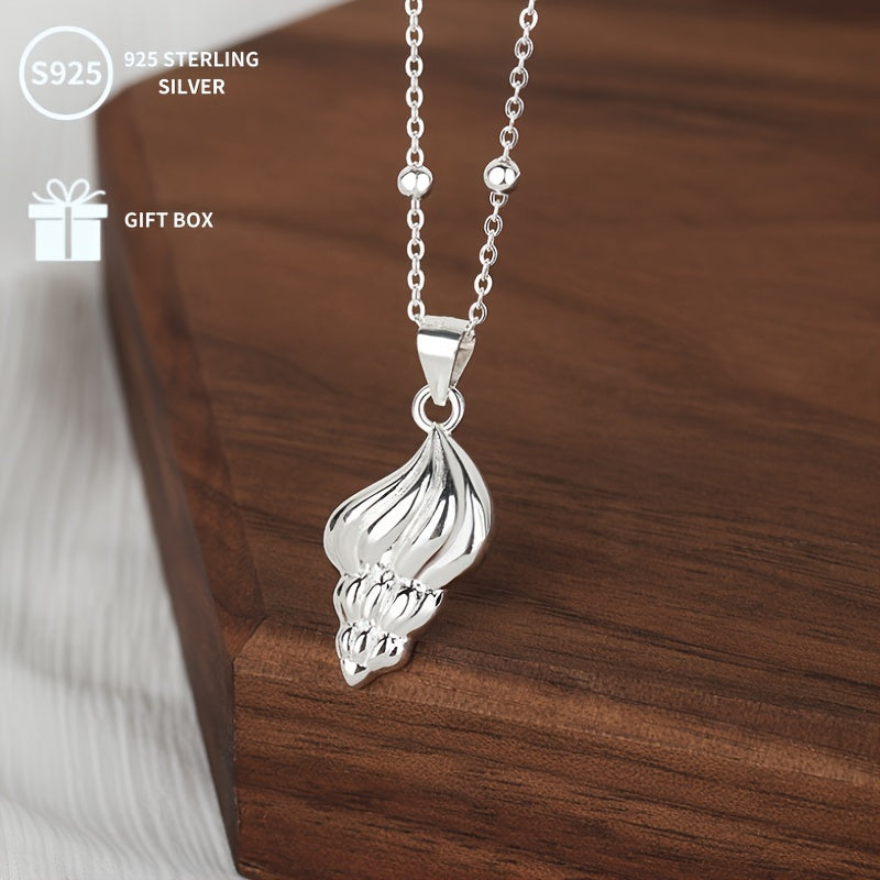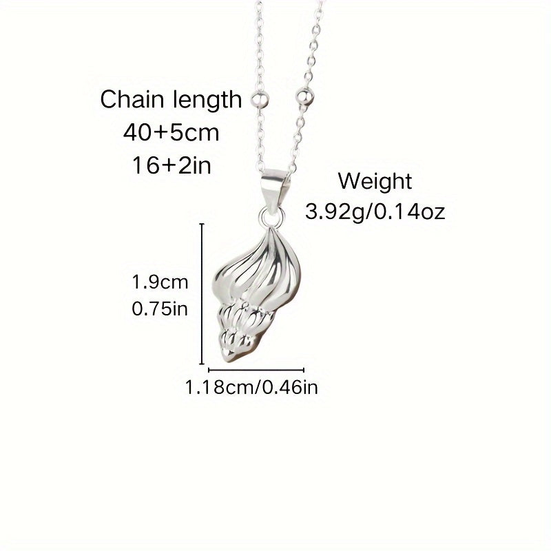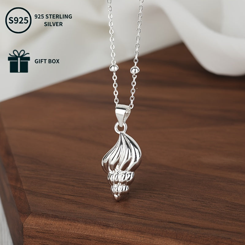 S925 Sterling Silver Conch Cone Pendant Necklace 3 92g