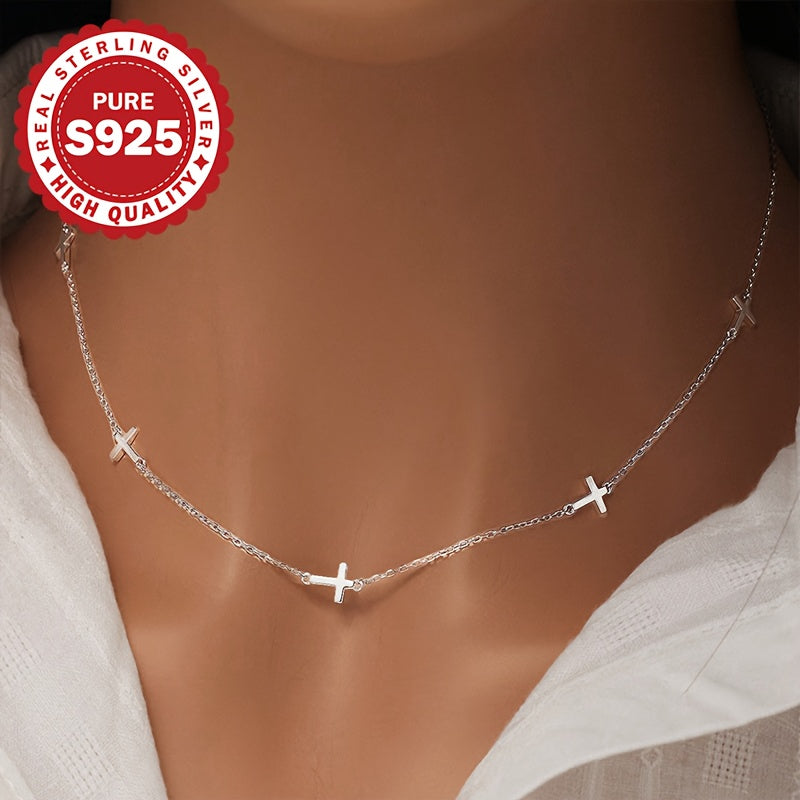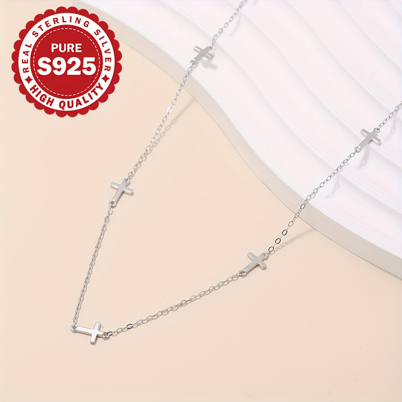 This S925 sterling silver cross pendant necklace is perfect for daily and gift wear. Lightweight at 2.7g, it's suitable for all seasons, including Halloween.