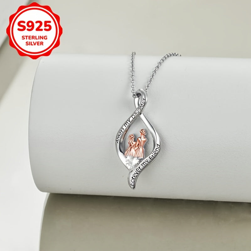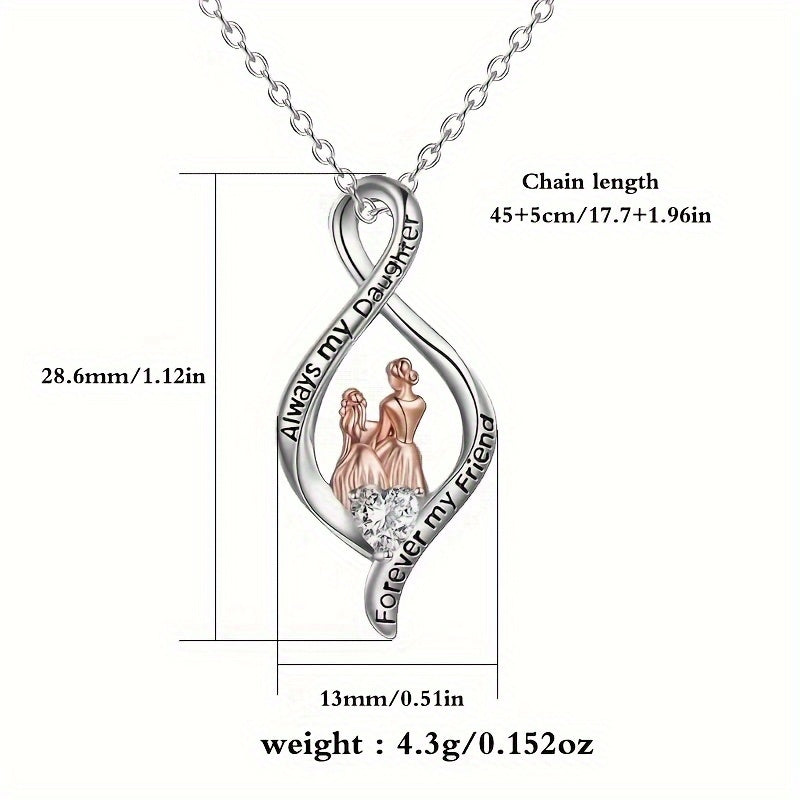 This beautiful pendant necklace features a heart design with synthetic zirconia, symbolizing the love between mother and daughter. A perfect gift for mothers to show appreciation.