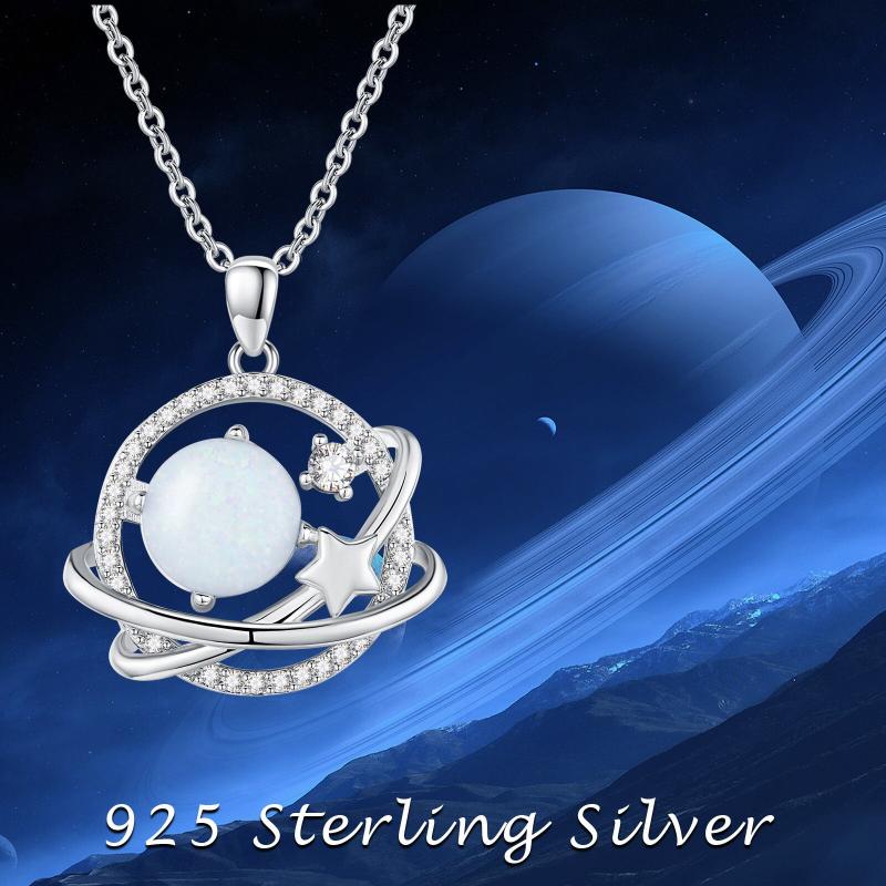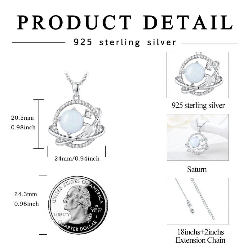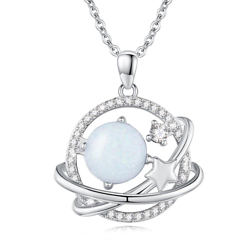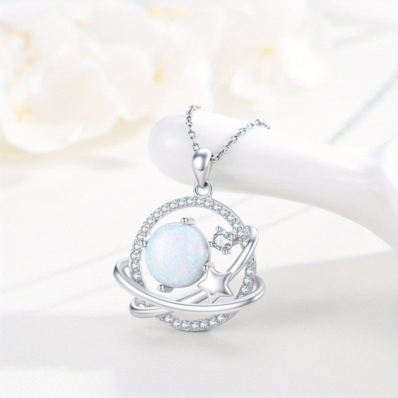 This stunning Saturn necklace features a 925 sterling silver pendant with opal accents, inspired by the interstellar universe. A perfect accessory for women who love all things celestial.