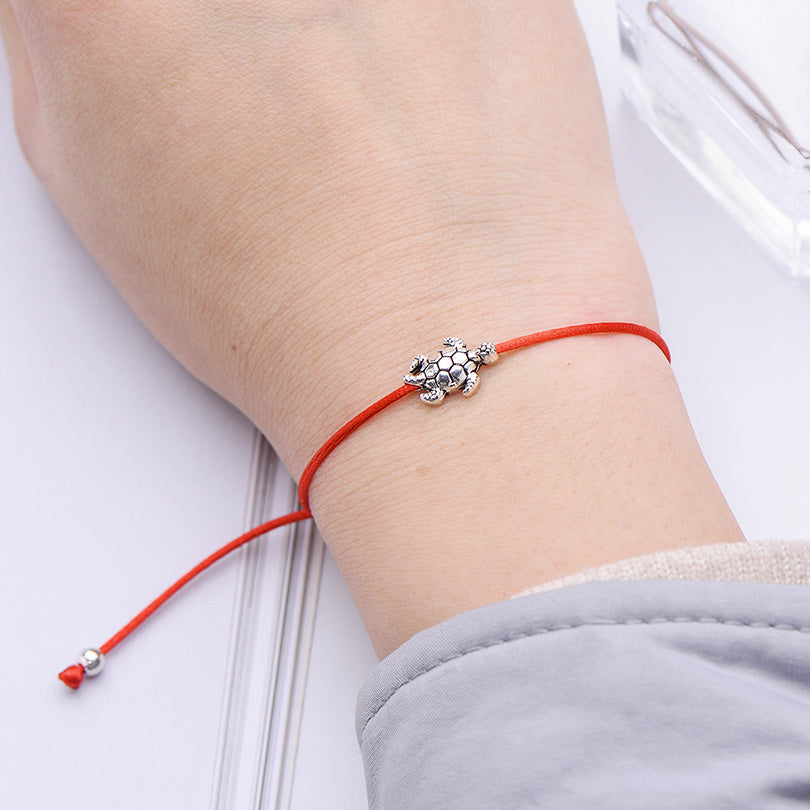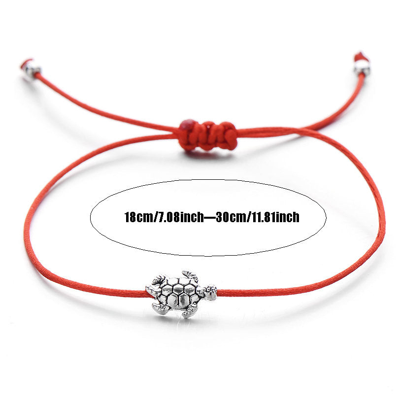 Adorn your wrist with this lucky sea turtle charm bracelet featuring a red string wish bracelet. Perfect gift for women and children. Made of silver plated jewelry.