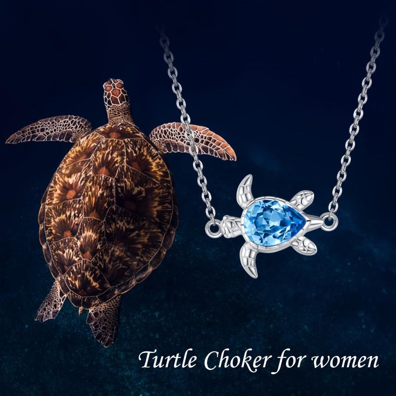 Elegant and intricate turtle choker necklace made of sterling silver, perfect for women who love ocean-inspired jewelry.