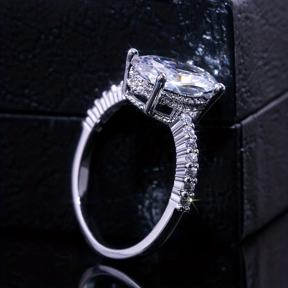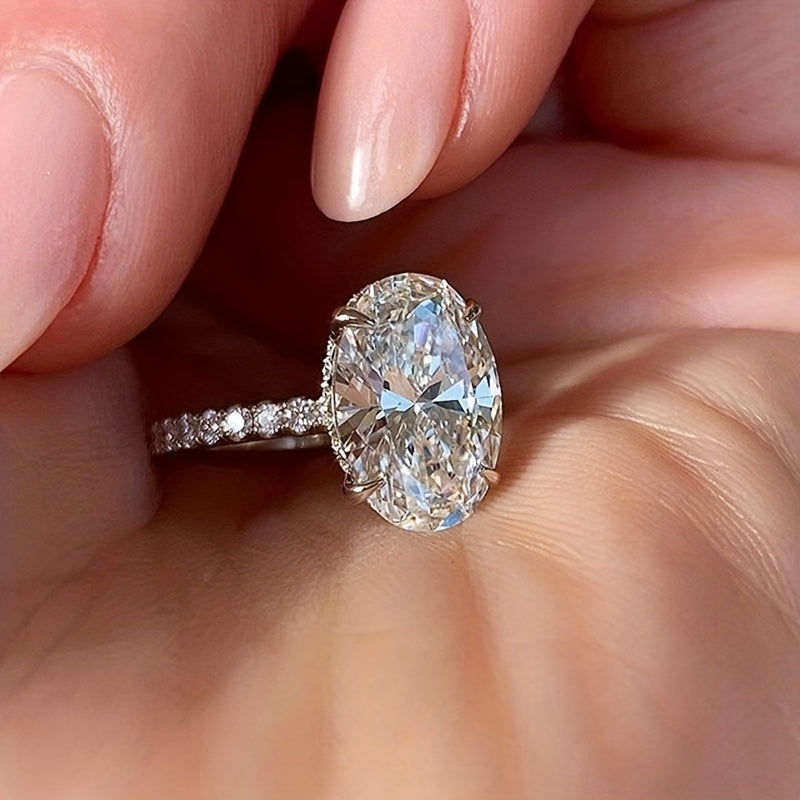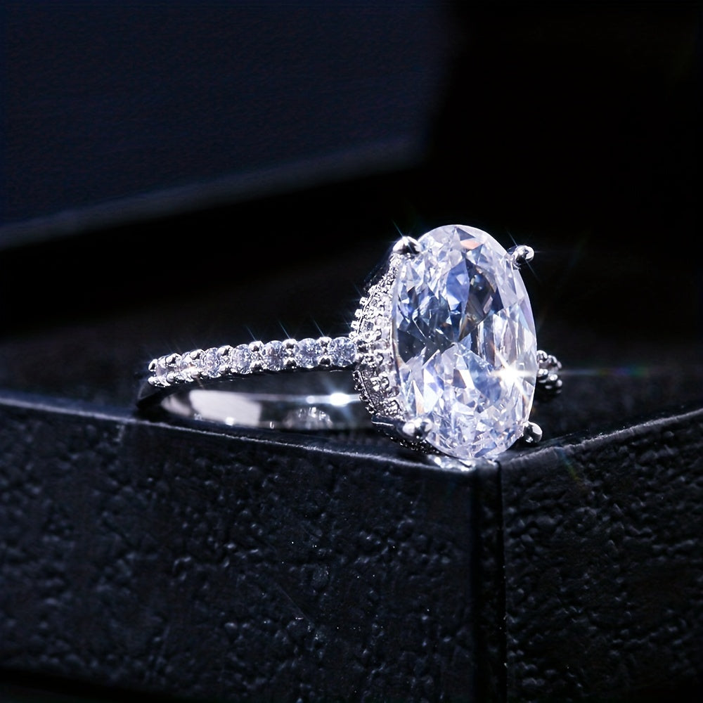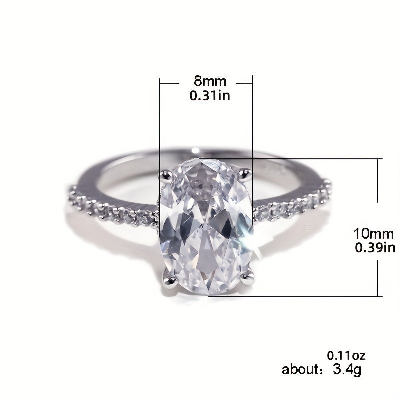 This elegant silver plated promise ring features an egg-shaped zircon inlay, making it perfect for engagements, weddings, or as a dainty evening party accessory. It's a thoughtful anniversary or birthday gift for your loved one.