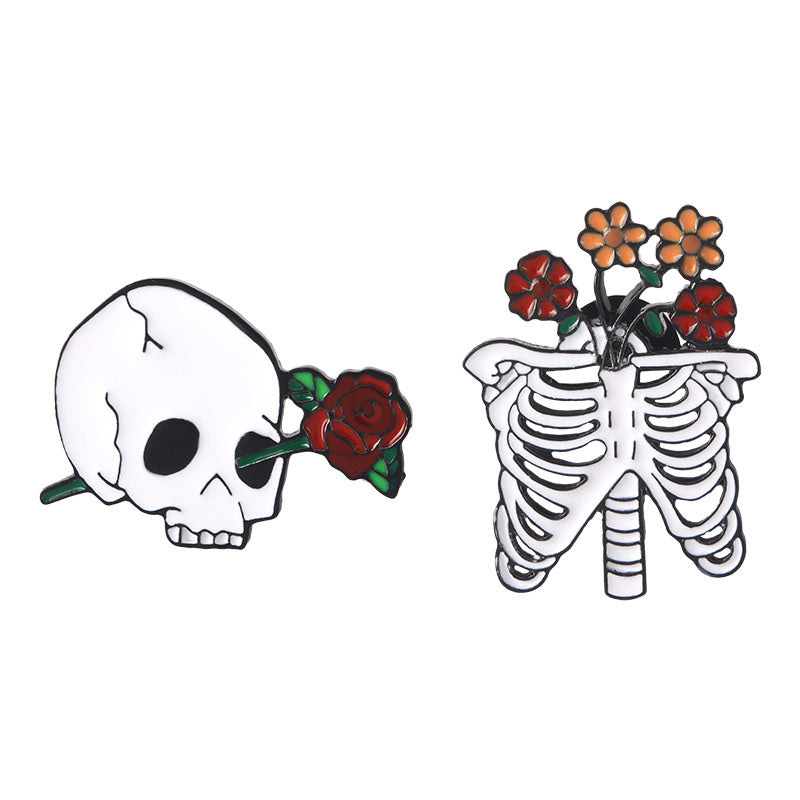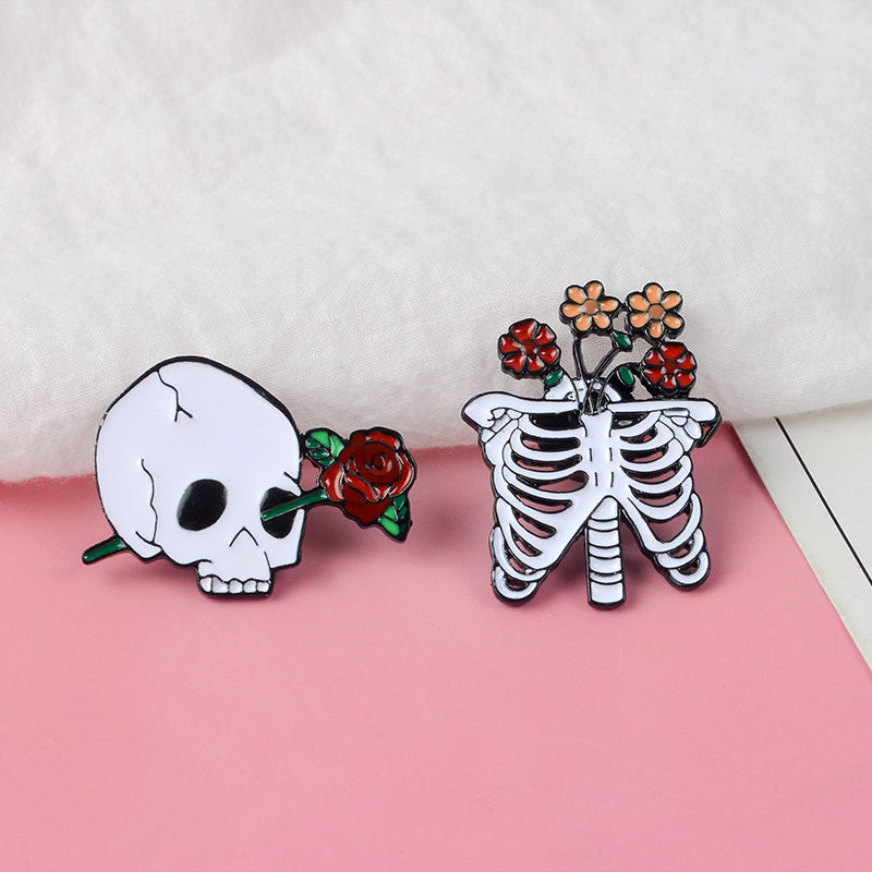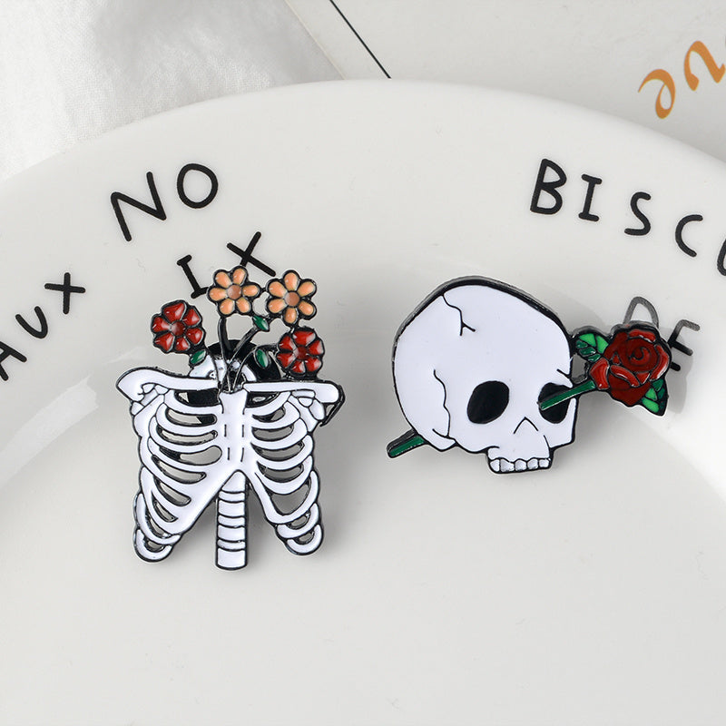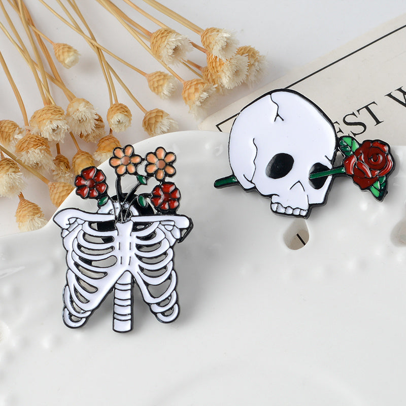 Add a touch of spooky elegance with this unique Skull Skeleton Rose Brooch. The oil dripping design adds a Halloween vibe, perfect for holiday wear. A hot selling item for fans of anime and Halloween style.