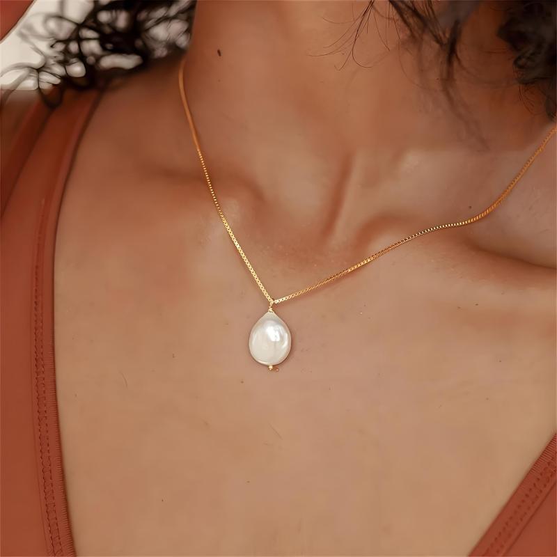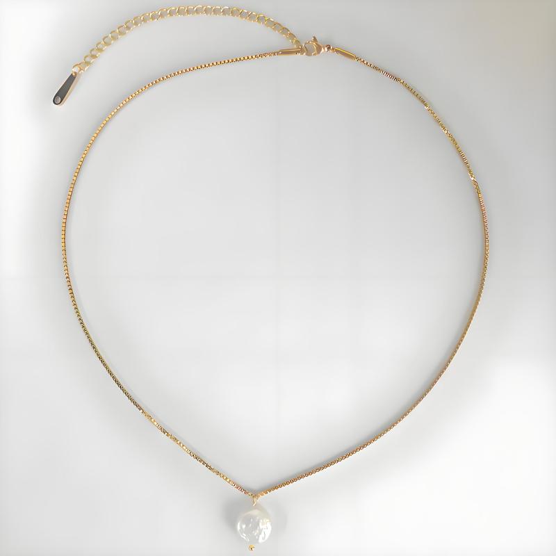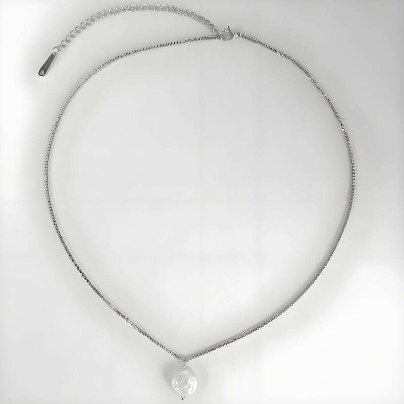 Add a touch of elegance to your outfit with this stainless steel necklace featuring a lustrous freshwater pearl pendant.