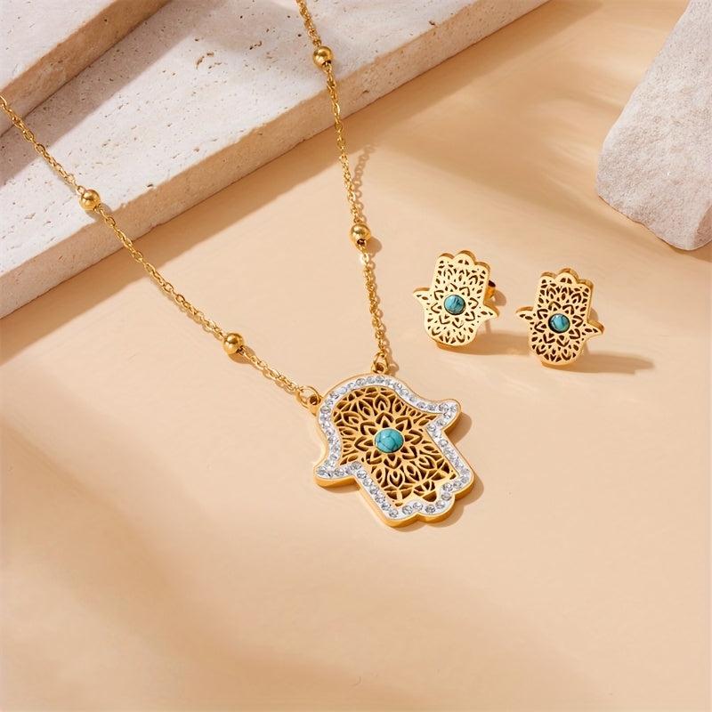 Elegant stainless steel jewelry set featuring a hollowed out palm design. Perfect for adding a touch of glamour to your outfit for any special occasion.