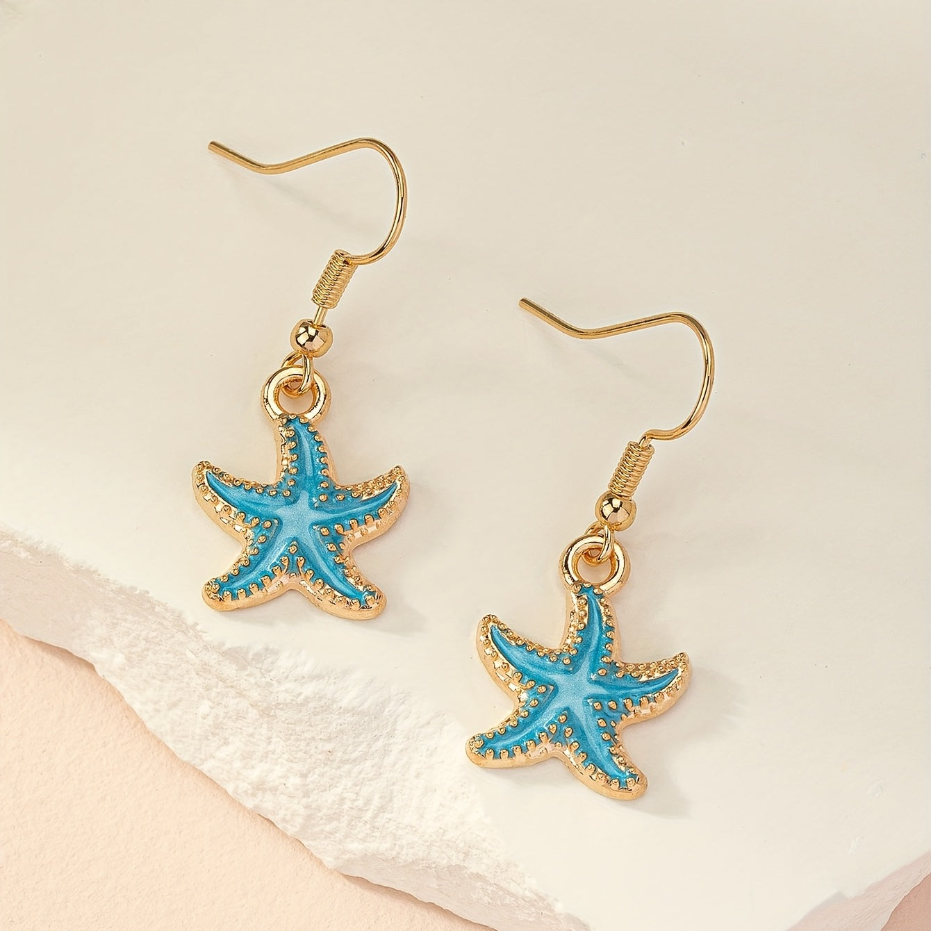 These retro style starfish dangle earrings are made of zinc alloy, perfectly designed for a delicate female gift.
