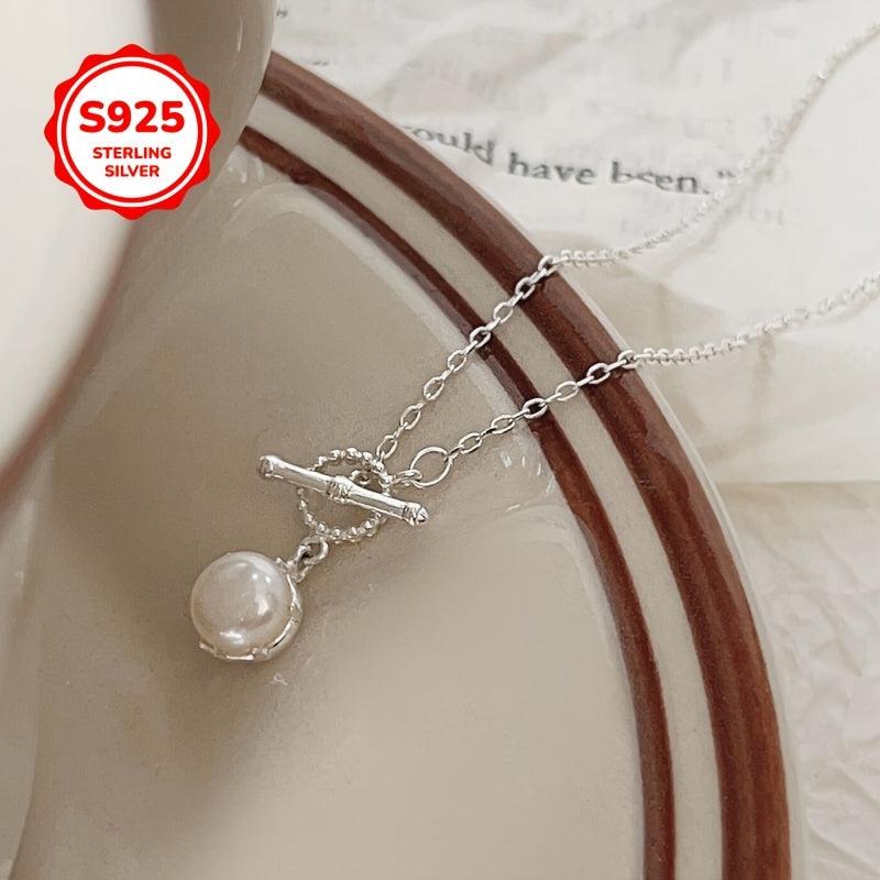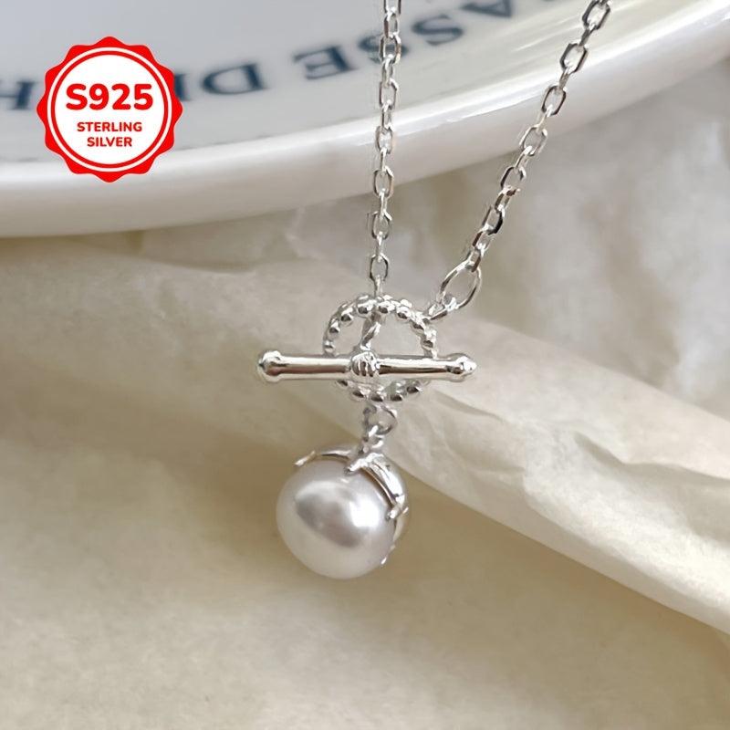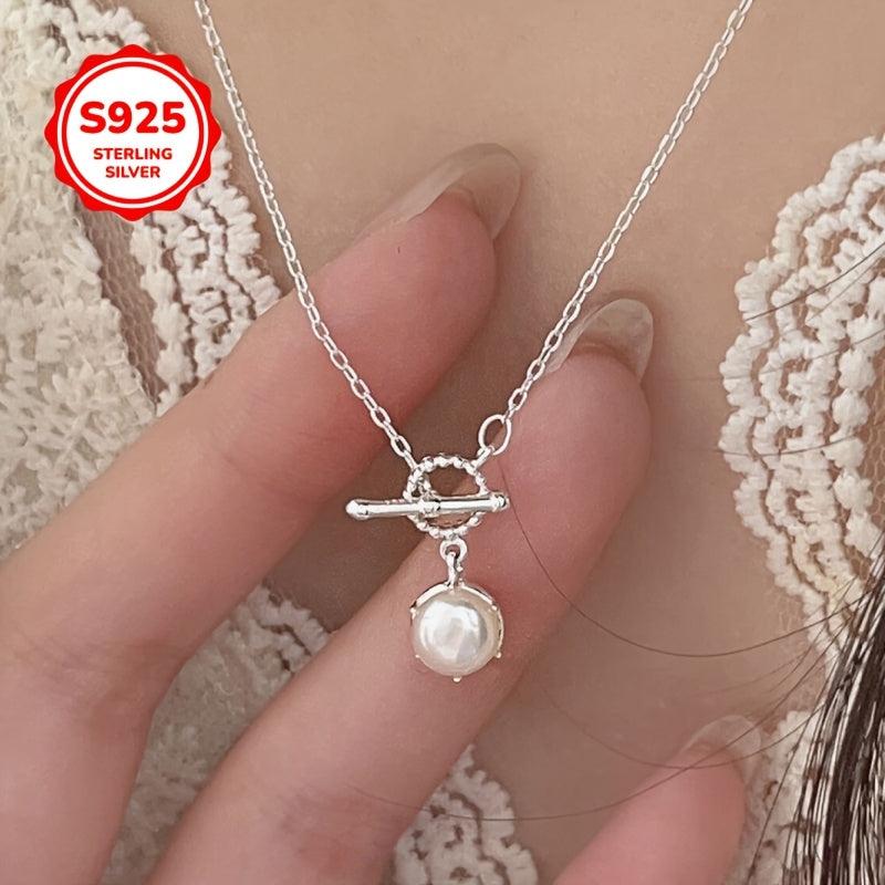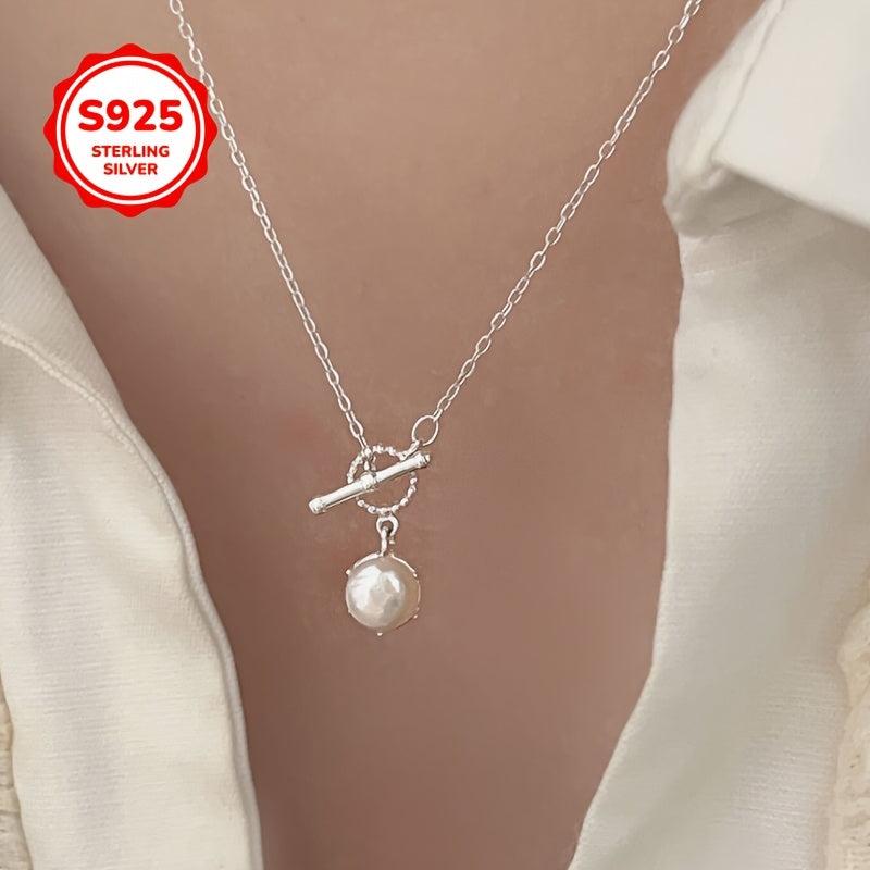 Elegant and versatile 925 sterling silver clavicle chain with a stunning baroque pearl pendant. Hypoallergenic and ideal for casual or dressy outfits. Perfect gift for Valentine's Day and Mother's Day.