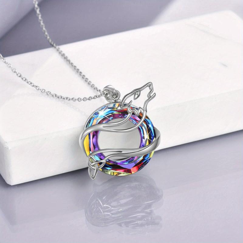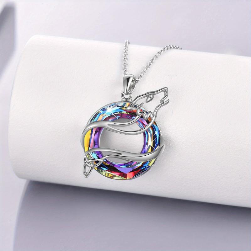 Embrace the power of the wolf with this stunning Celtic pendant necklace made from sterling silver. The vibrant red accents add a touch of boldness to your look.