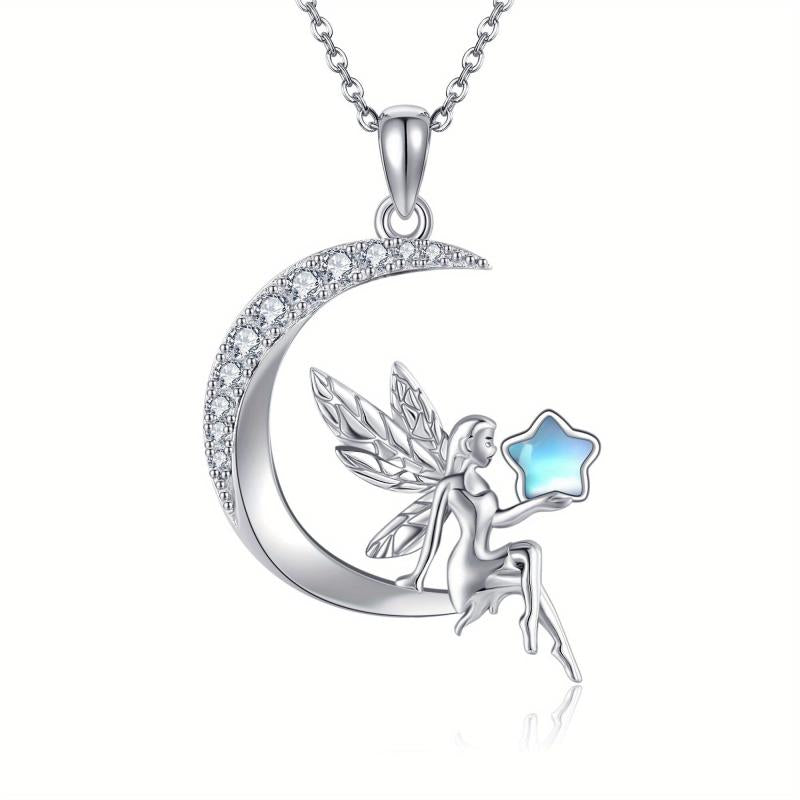 This enchanting necklace features a sterling silver fairy pendant with moon accents, perfect for any fairy lover. Crafted with attention to detail, this necklace is a whimsical addition to your jewelry collection.