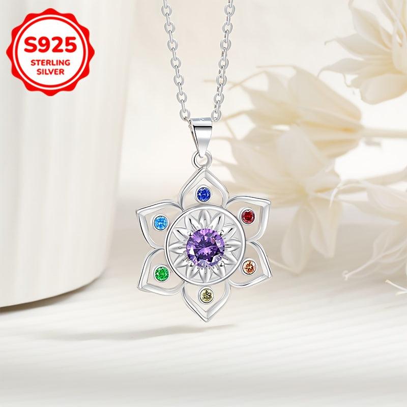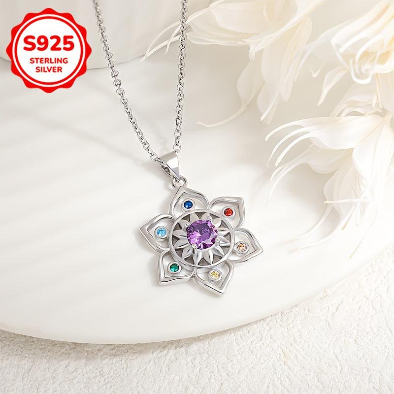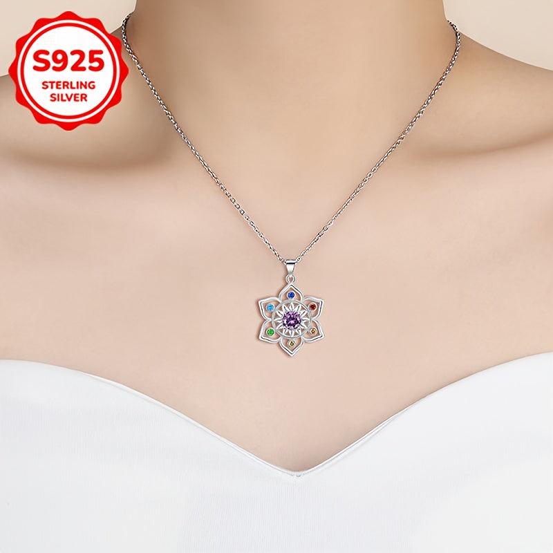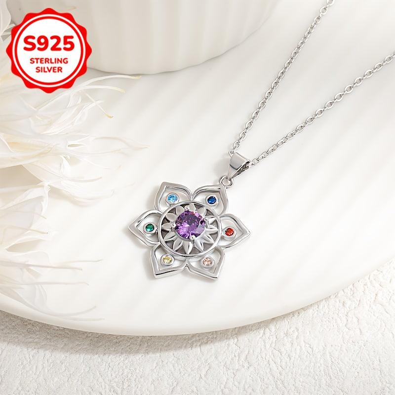 Beautiful and vibrant floral pendant necklace crafted from S925 sterling silver and colorful cubic zirconia. Suitable for daily wear and special occasions.