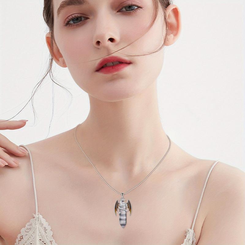 This exquisite dragon pendant necklace features a stunning opal stone set in sterling silver. It's the perfect accessory for any dragon lover. Ideal for Christmas, birthday, or special occasions.