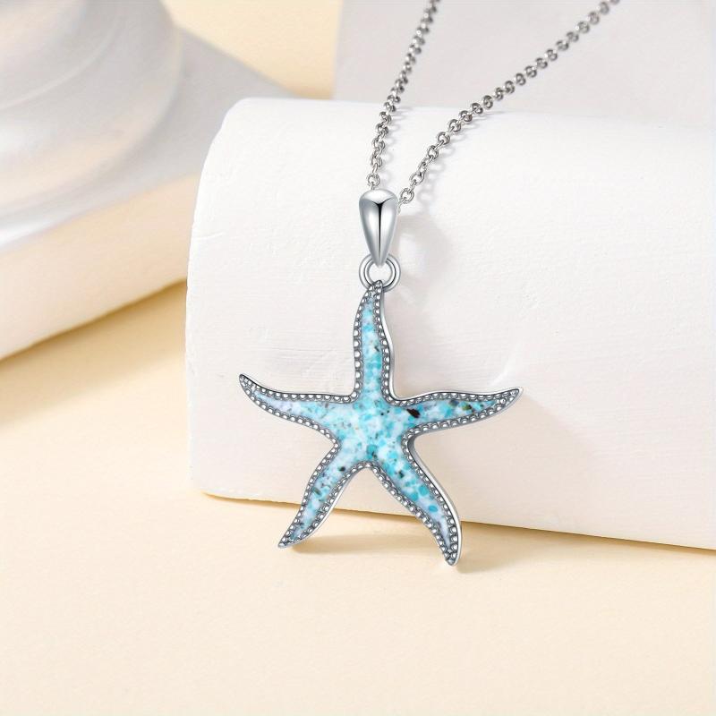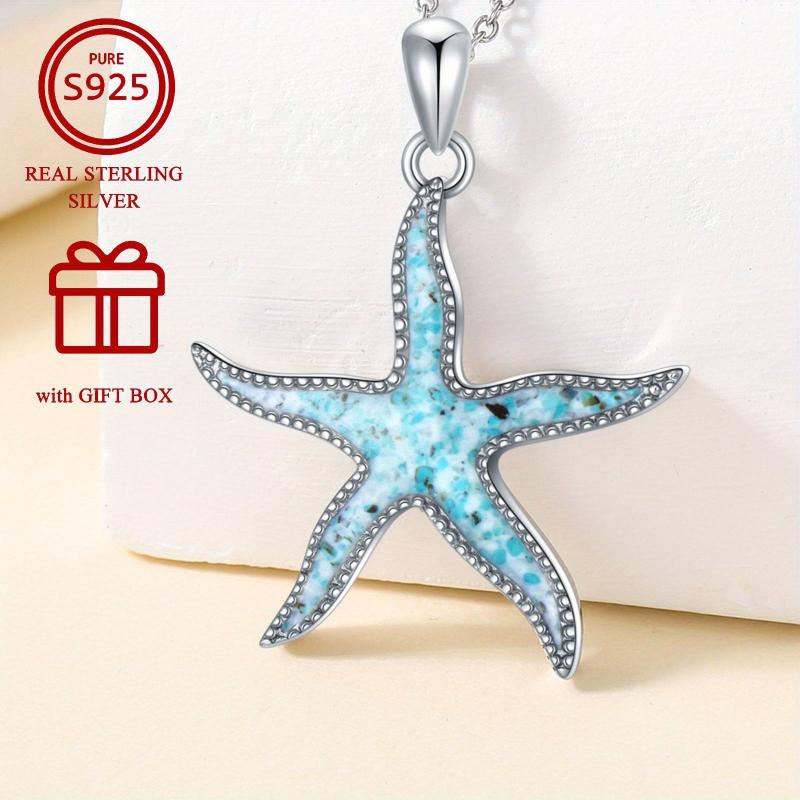 Adorn yourself with the beauty of the sea with this elegant starfish necklace. Made of sterling silver, this pendant necklace is a perfect accessory for beach lovers and nature enthusiasts.