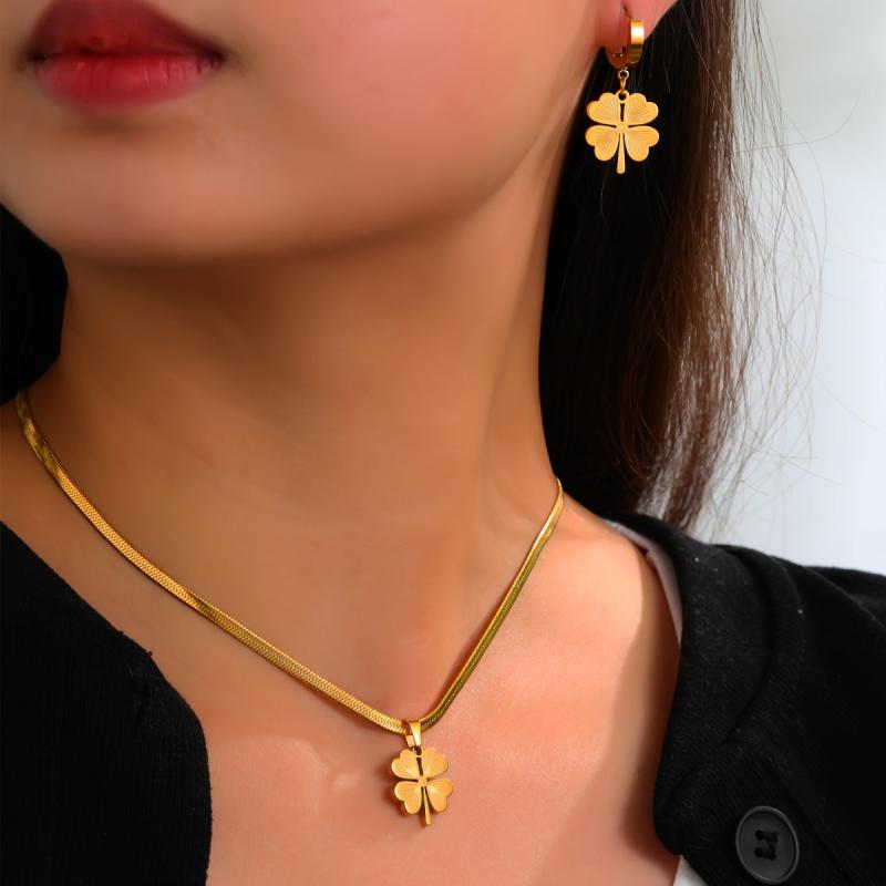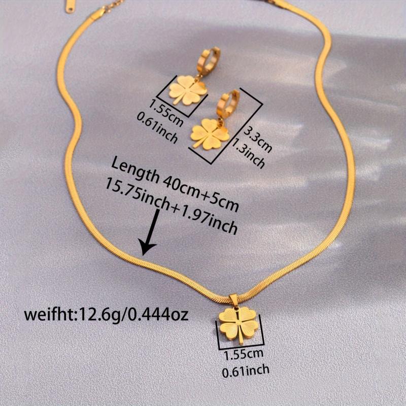 Elevate your look with this chic three-piece stainless steel jewelry set featuring a floral pendant necklace and earrings. Ideal for vacation parties and casual wear.