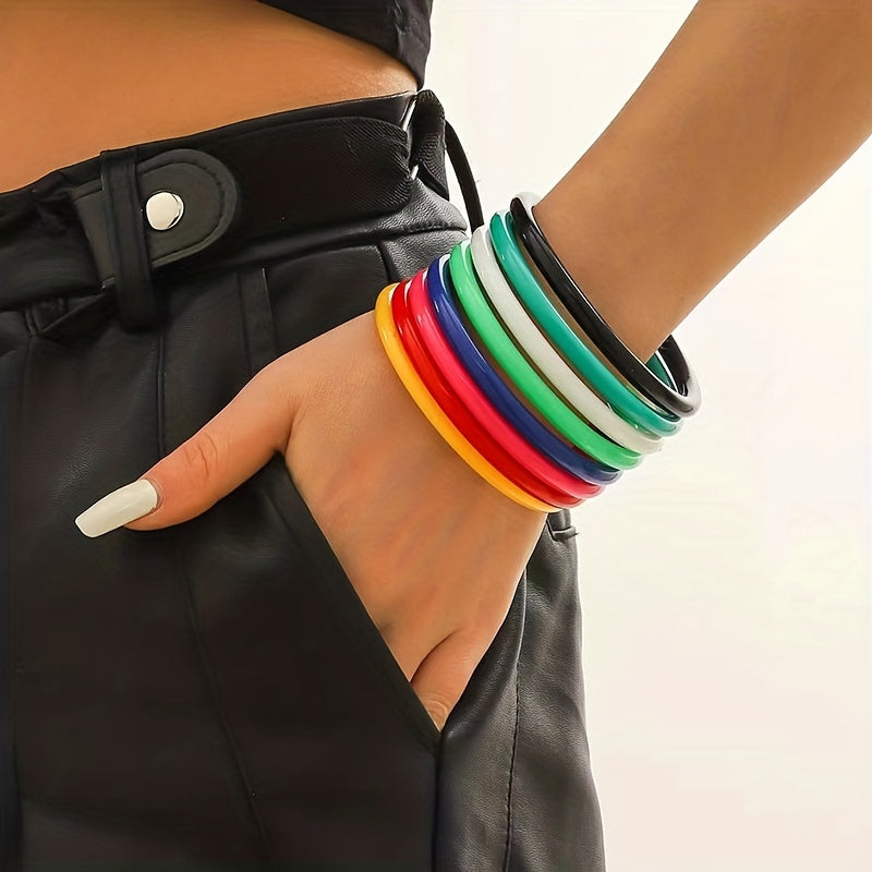 Get ready for a fun and stylish beach vacation with this minimalist creative bracelet. The colorful candy acrylic design adds a pop of color to your outfit.