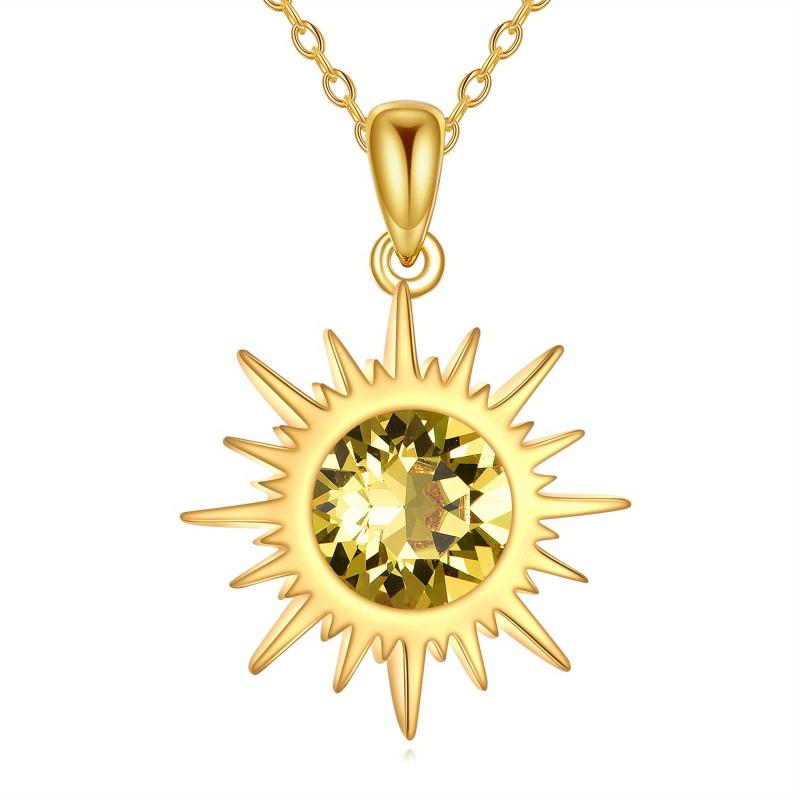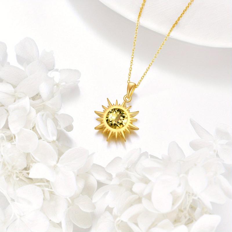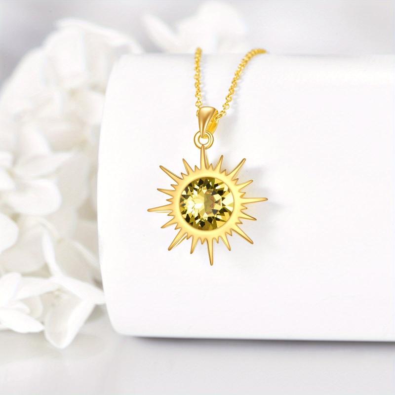 Sun Citrine Necklace 925 Sterling Silver Yellow Pendant Necklace