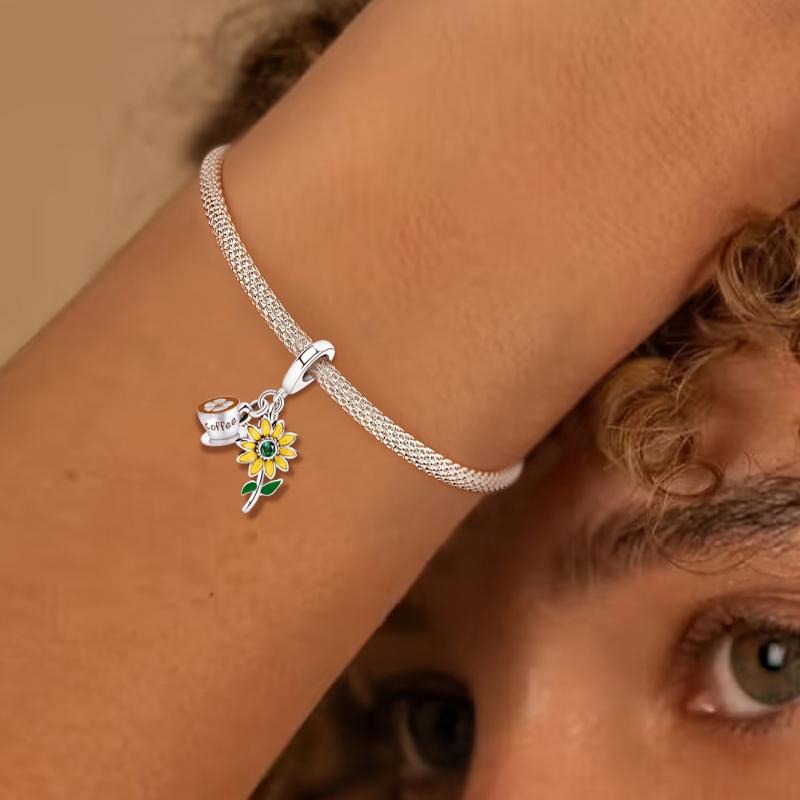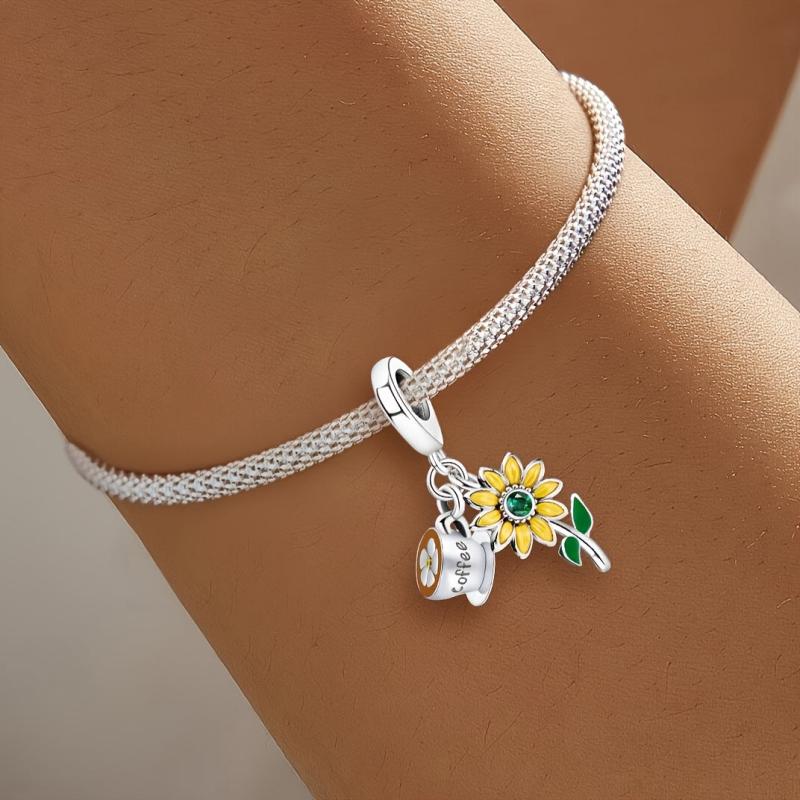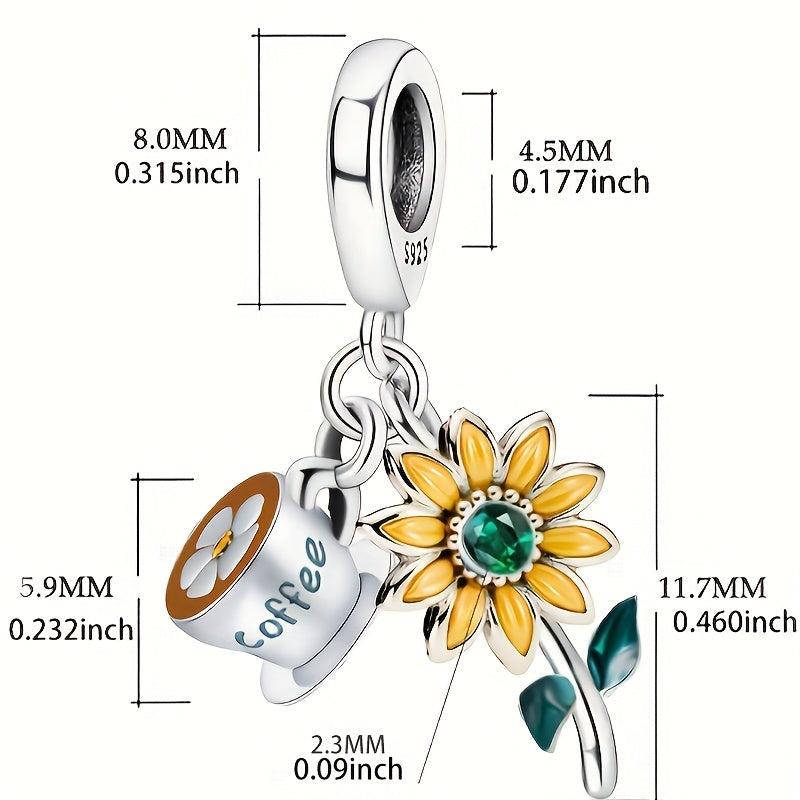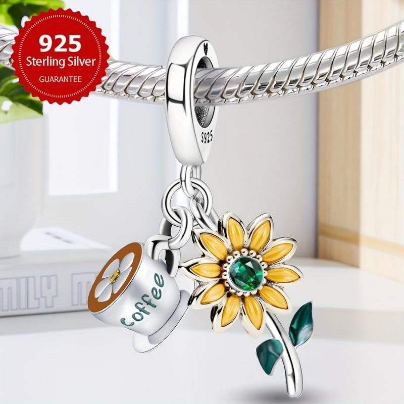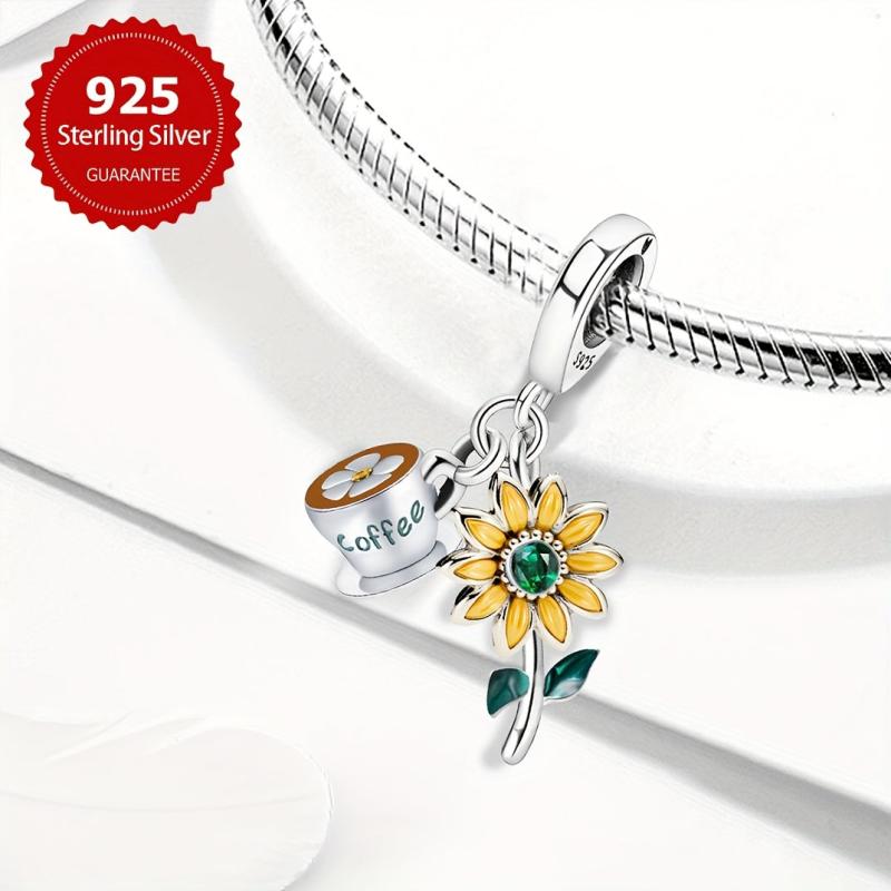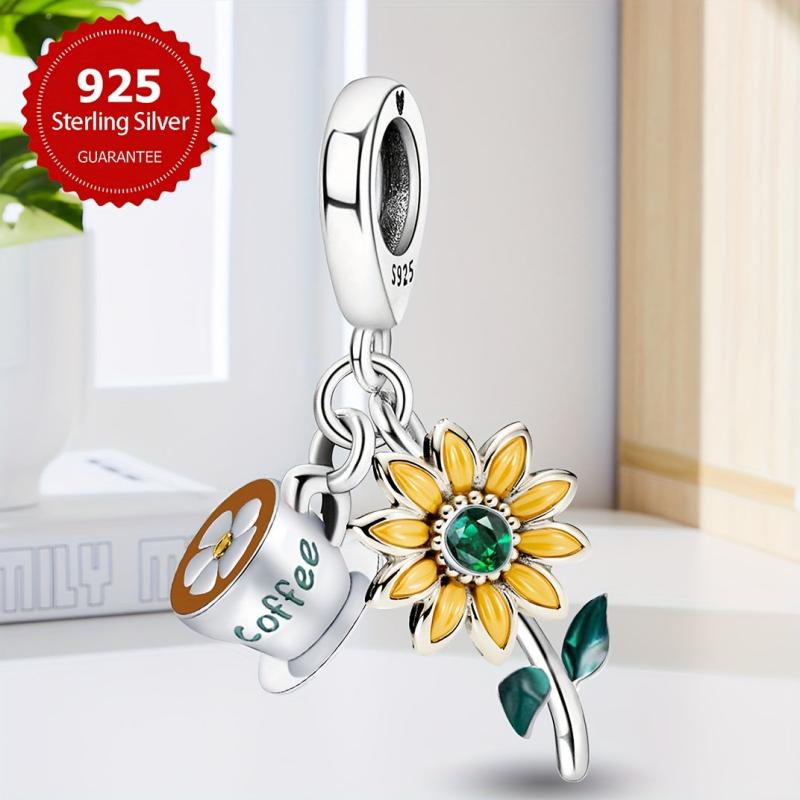 This sunflower coffee pendant is perfect for women's jewelry making. Crafted from s925 sterling silver, it adds a touch of elegance to any accessory.