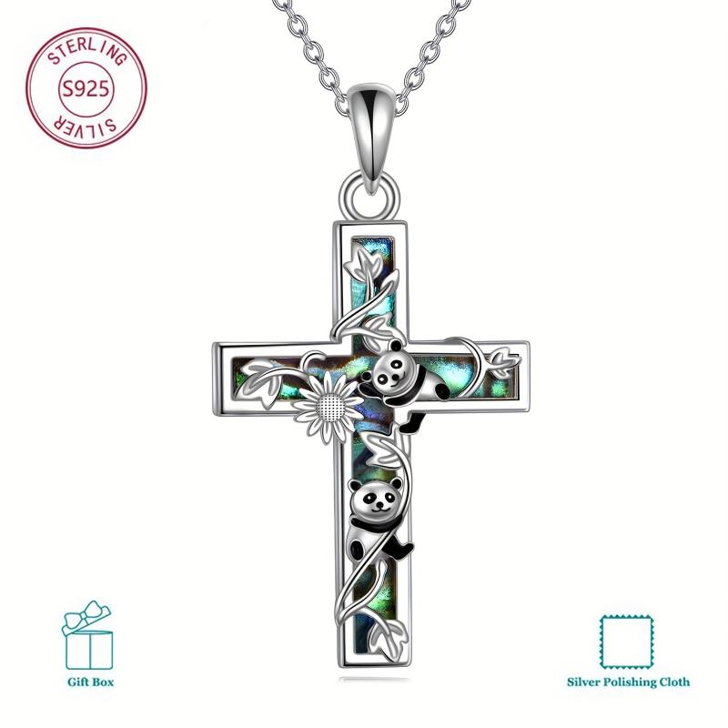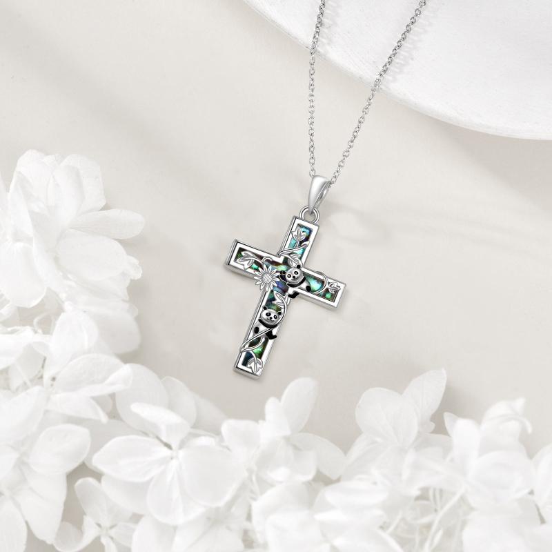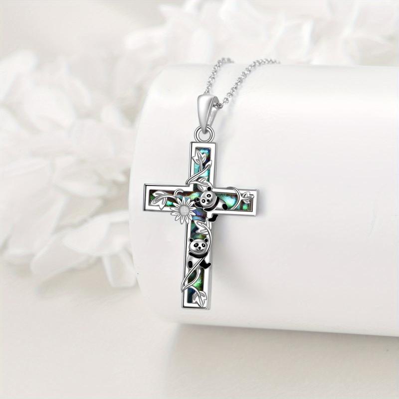 Beautifully crafted Sunflower Cross Necklace featuring a sterling silver cross with intricate abalone shell inlay, perfect for expressing your Christian faith.