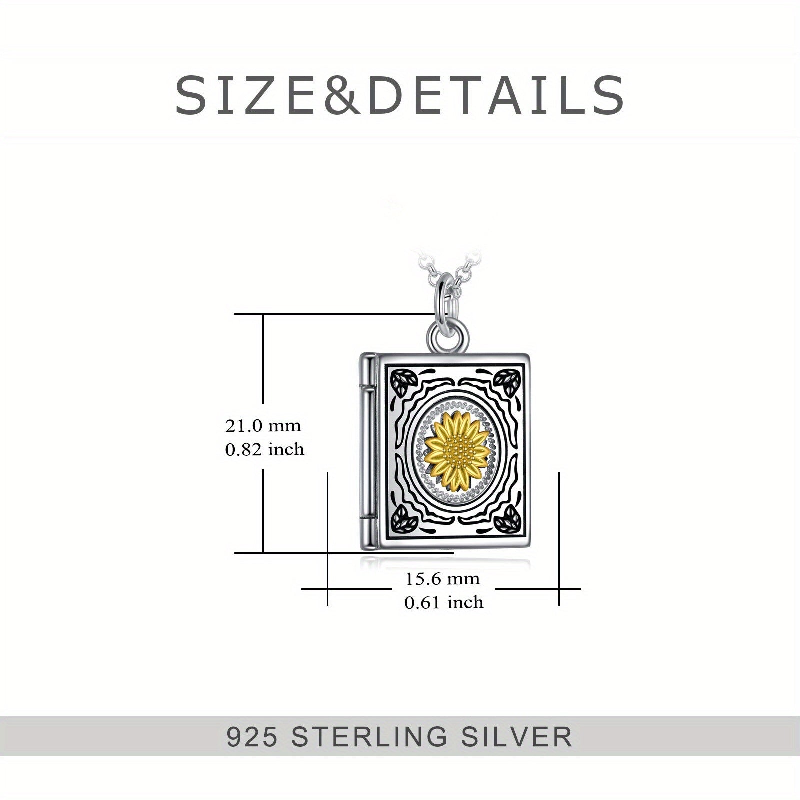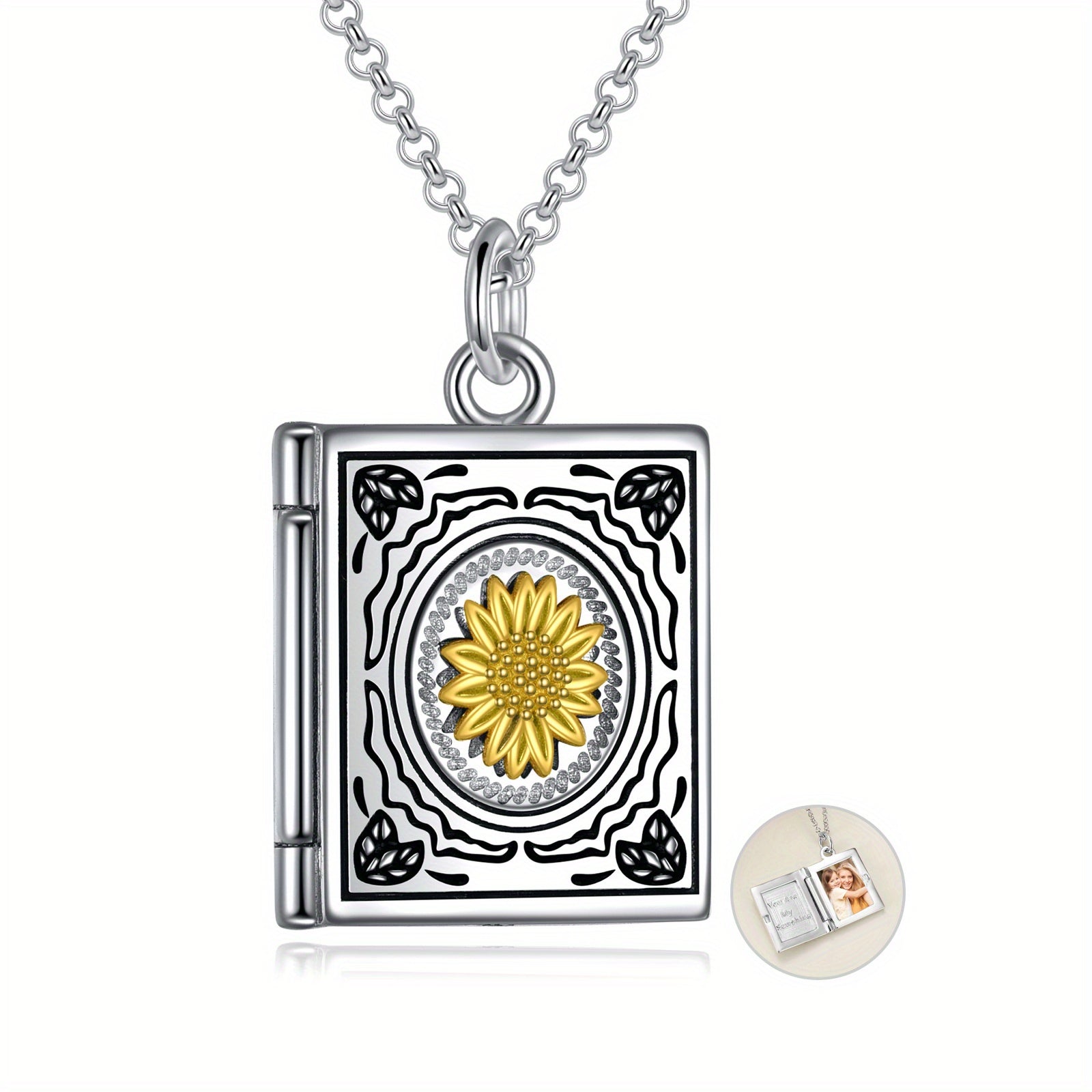 Sunflower Photo Pendant Necklace 925 Silver Book Necklace for Women