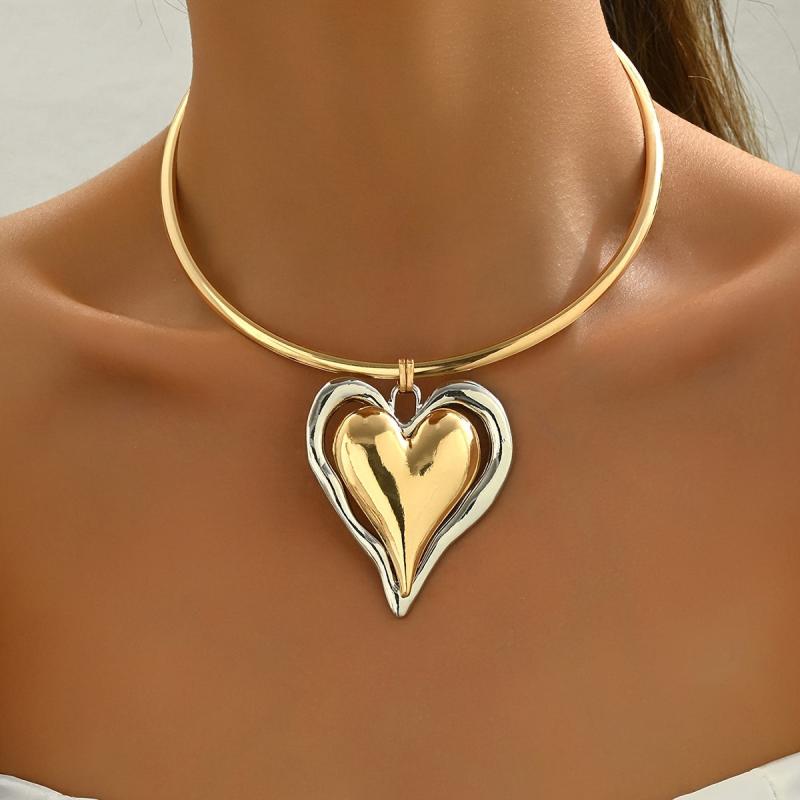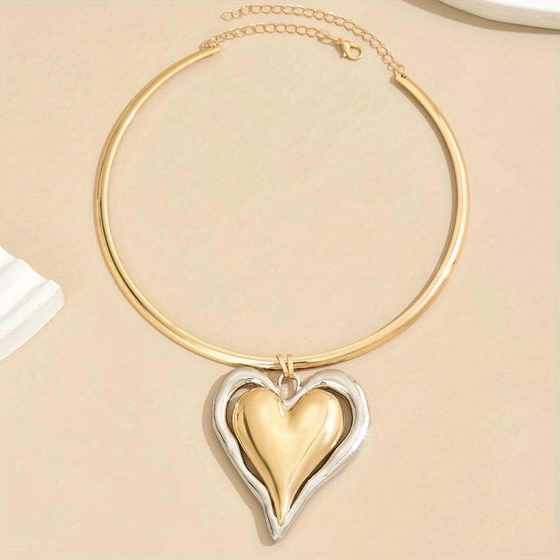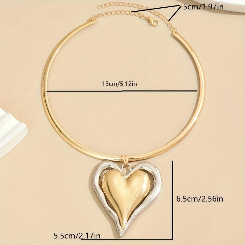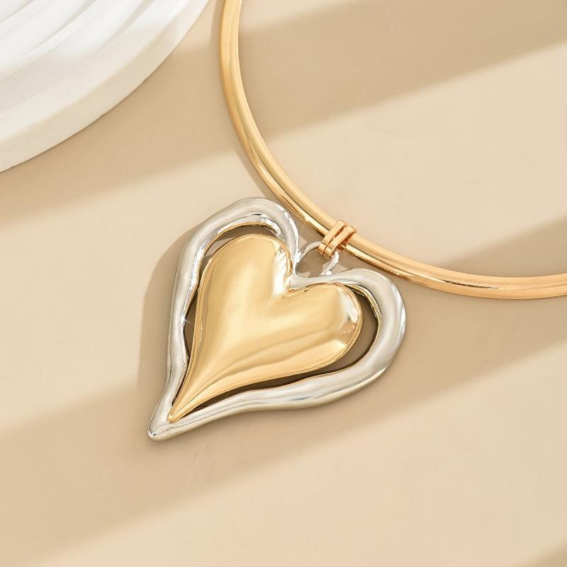 This versatile necklace features a glossy thin chain with a two-tone heart pendant design, perfect for everyday wear and parties.