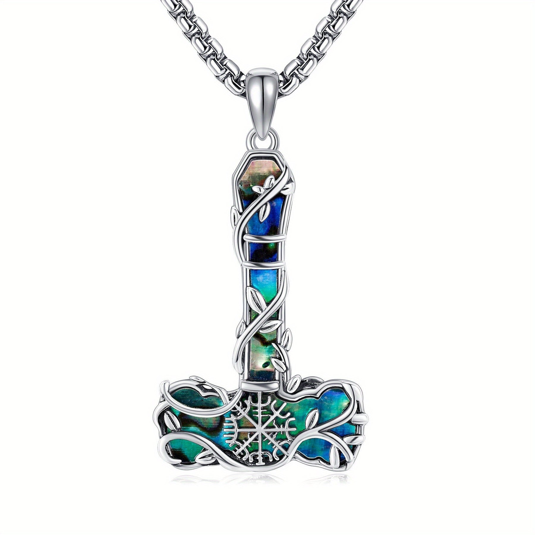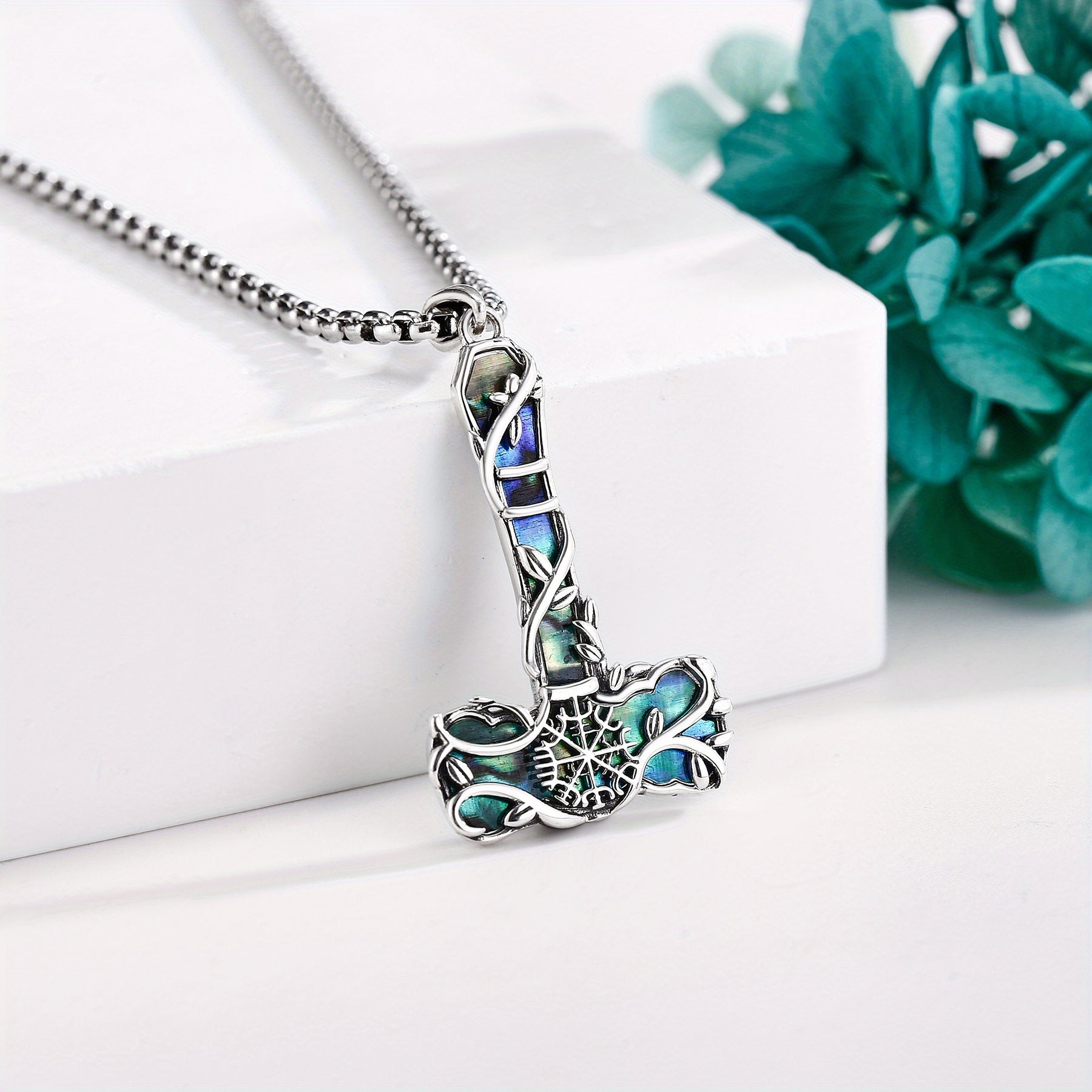 Make a bold statement with this stunning Thors Hammer necklace crafted from 925 sterling silver with an abalone shell design. Perfect gift for the strong women in your life!