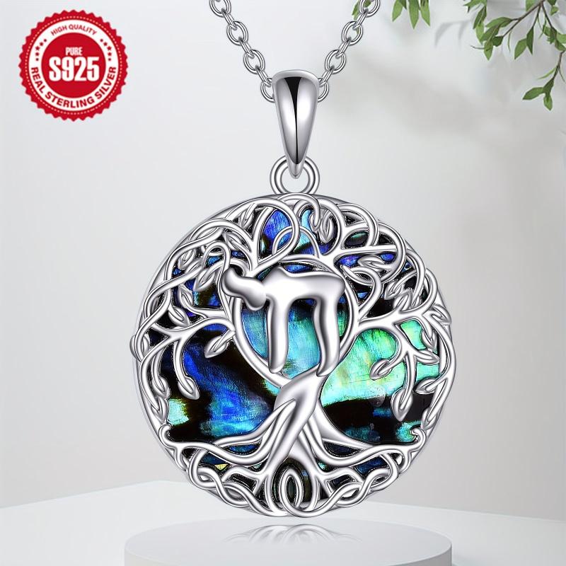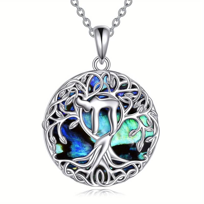 Tree of Life Necklace Sterling Silver Jewish Chai Pendant Abalone Shell Jewelry