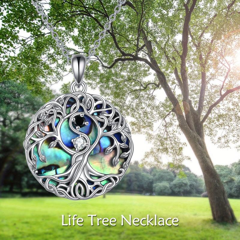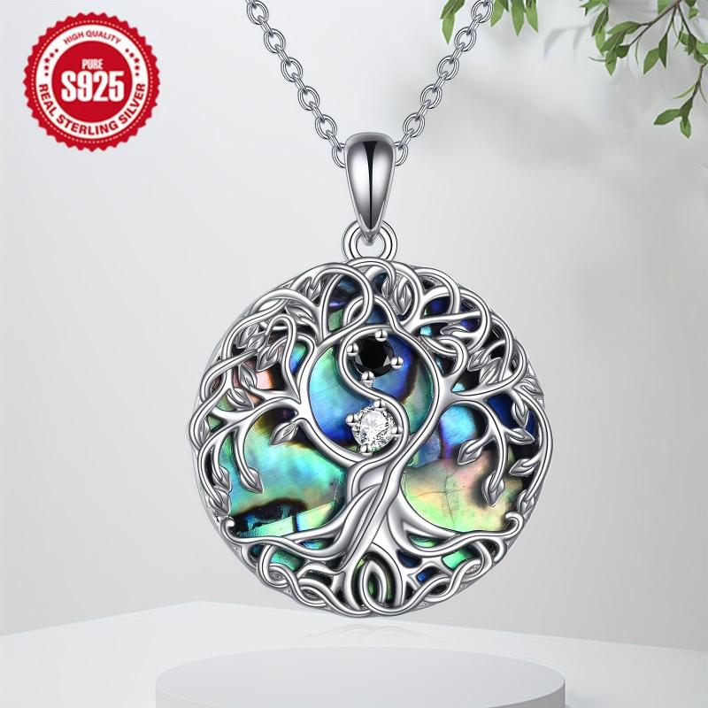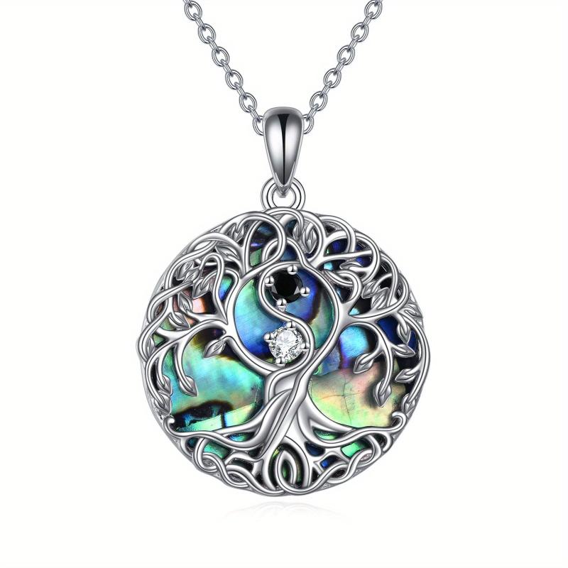 This stunning Tree of Life necklace features a sterling silver Yin Yang Tree pendant with beautiful abalone shell accents. Perfect for both women and men.